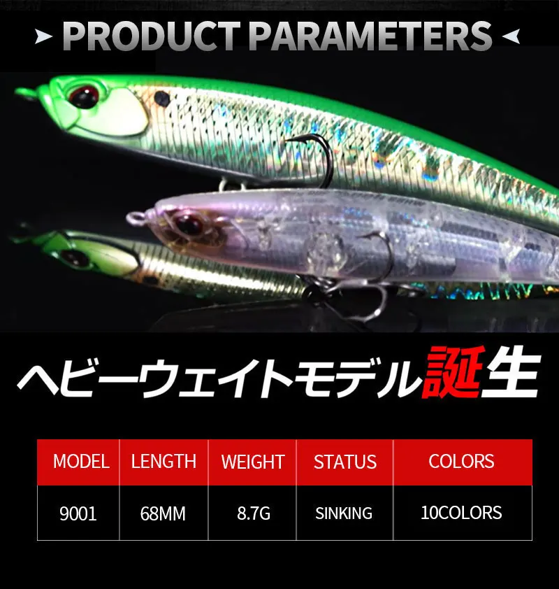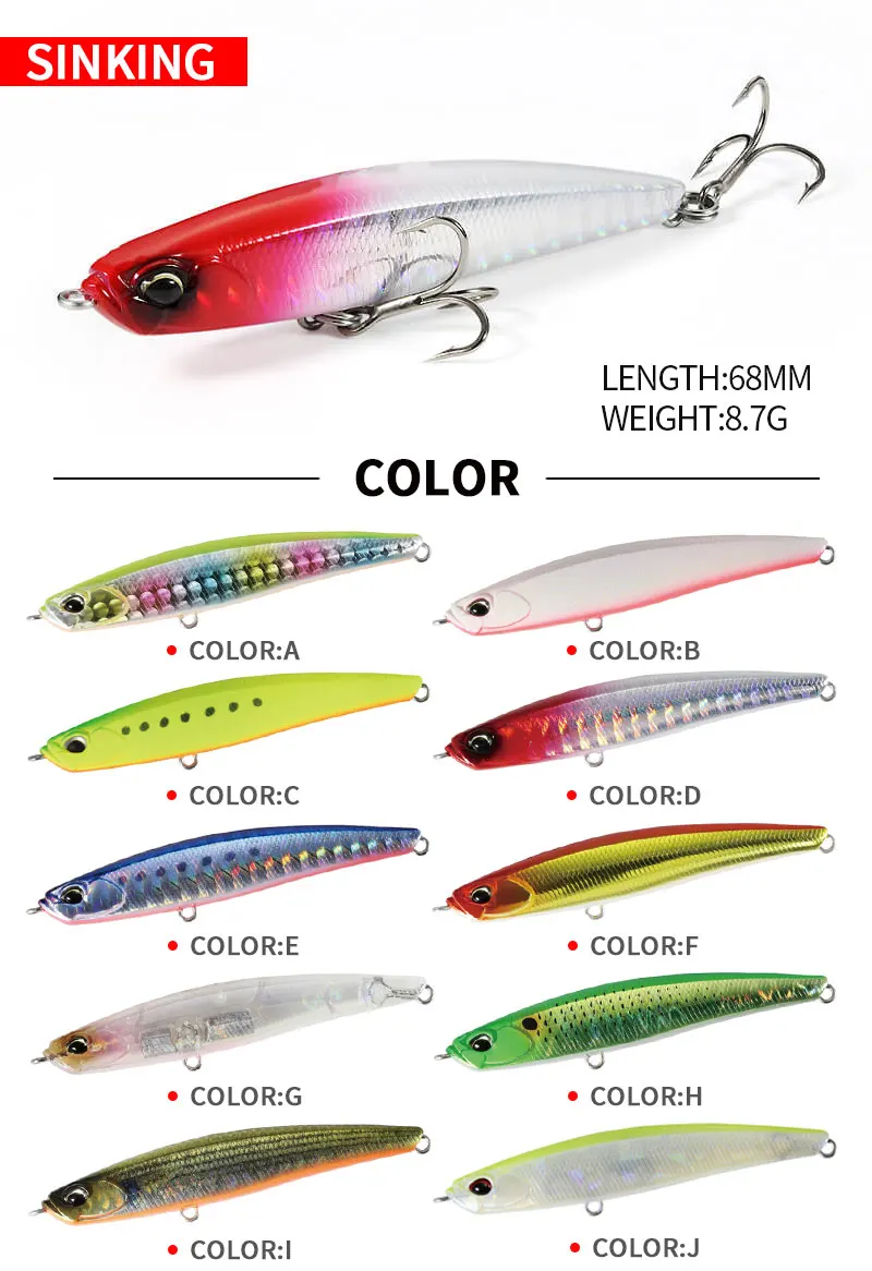 Señuelos de Pesca de lápiz de hundimiento, 1 piezas, 68mm, 8g, Wobblers de Pesca de agua salada, cebo Artificial para lubina, Swimbait, equipo de Pesca