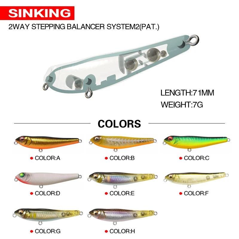 Lápiz de hundimiento para pesca, cebo duro para trucha de agua dulce, señuelo de lubina, Wobbler, Señuelos de Pesca, cebo de lápiz, 1 de 71mm, 7g, 9076