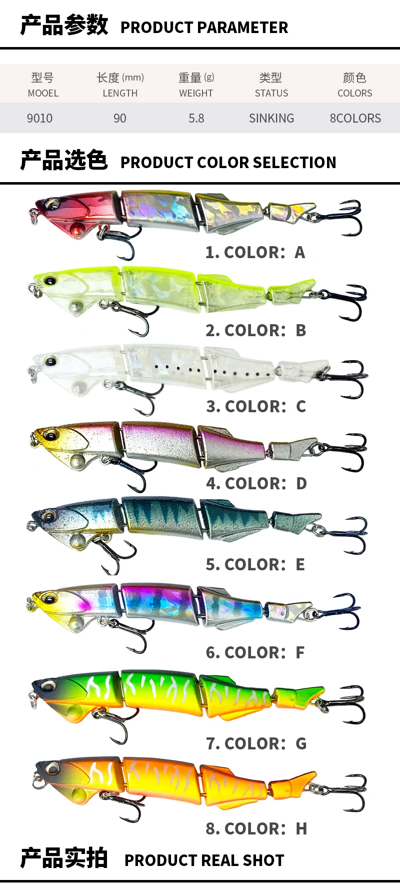90mm 5,8G 8 colores realista multi articulado hundimiento Wobblers Señuelos de Pesca para Lucio Swimbait Crankbait Minnow trucha lubina aparejos de pesca cebos