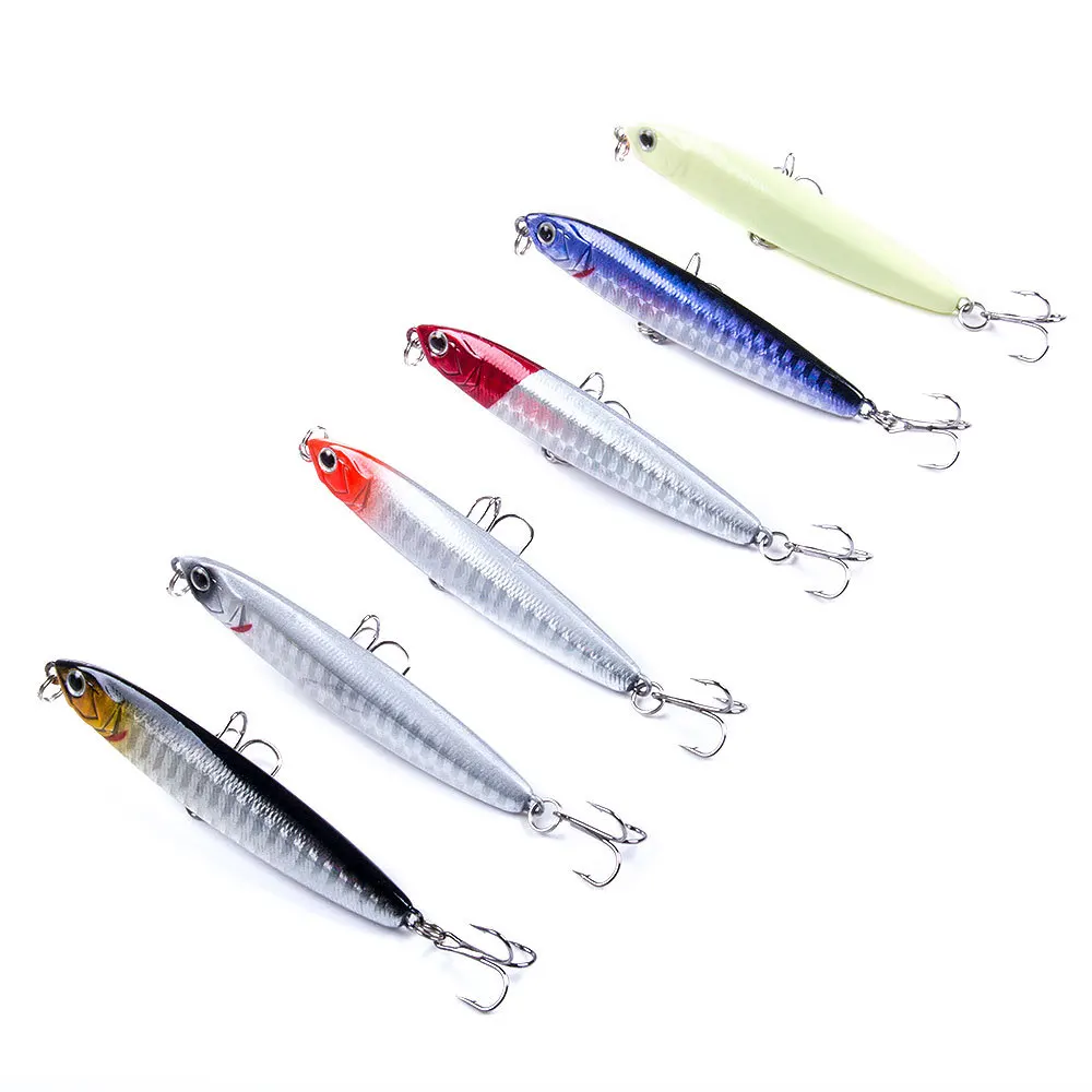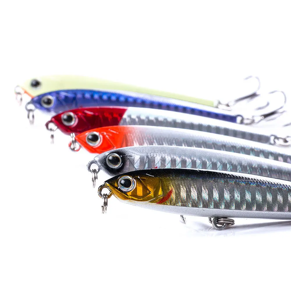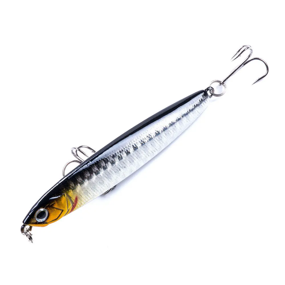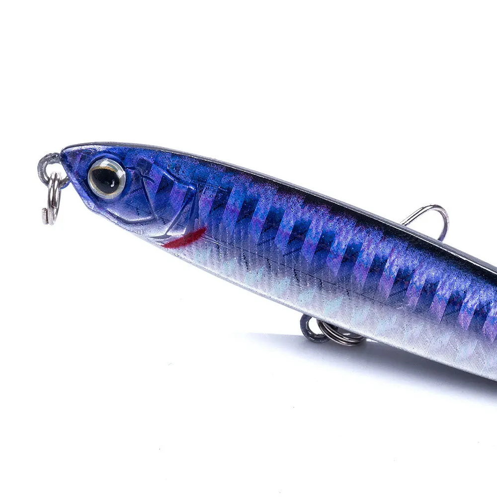 Señuelos de Pesca con lápiz que se hunden, 75mm, 10g, ojos 3D, Wobblers de Pesca de agua salada, cebo Artificial para lubina, Swimbait sin labios, cebo de Pesca