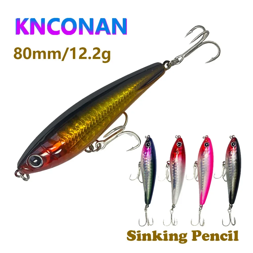 Señuelos de Pesca con lápiz que se hunden, 80mm, 12,2g, Twitchbait costero, Pesca de agua salada, cebo duro Artificial, equipo de carpa para trucha Topwater