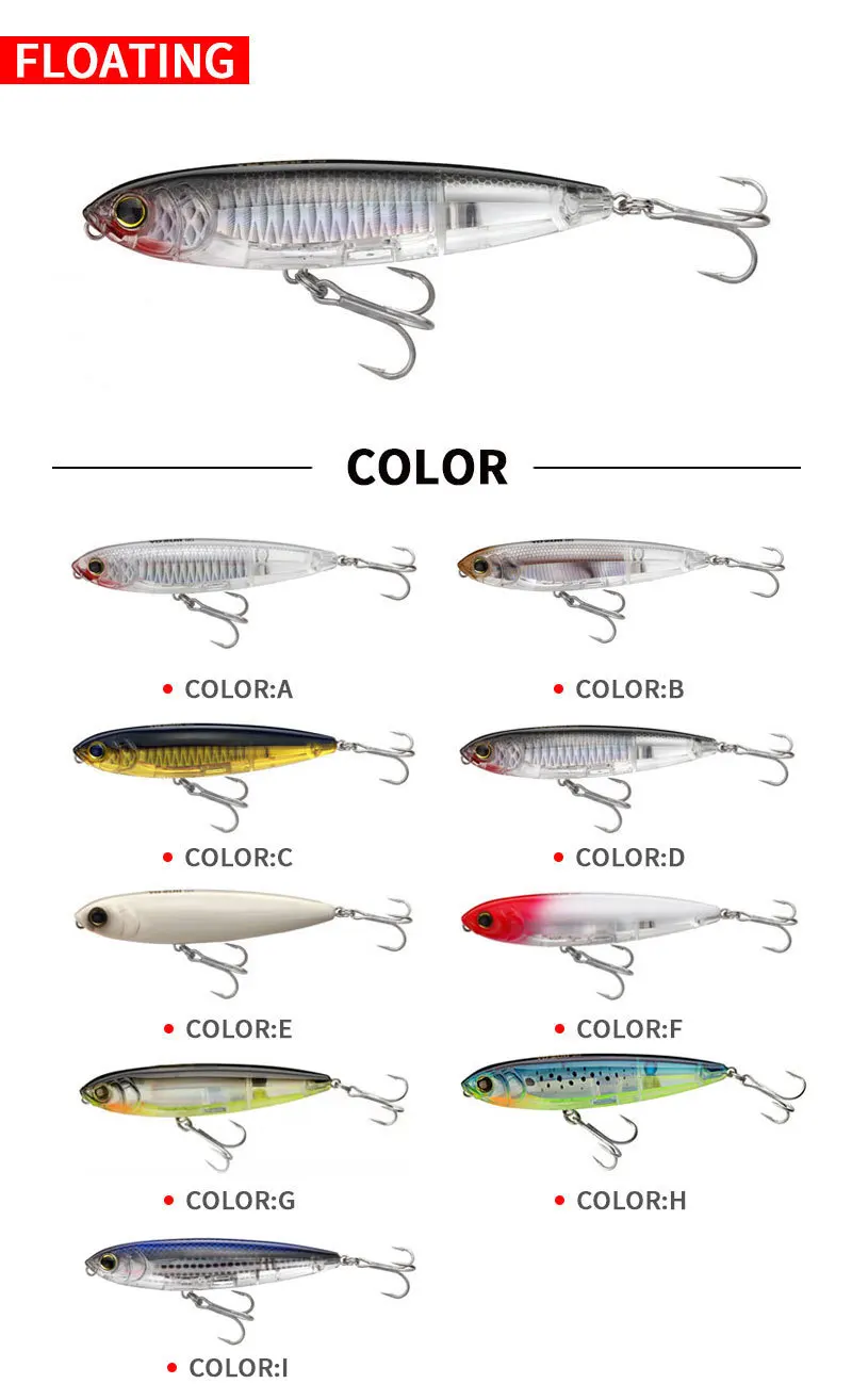 Señuelos de Pesca de lápiz de superficie, cebo duro Artificial, Swimbait flotante, Wobbler, trucha, lubina, 100mm, 17,5g