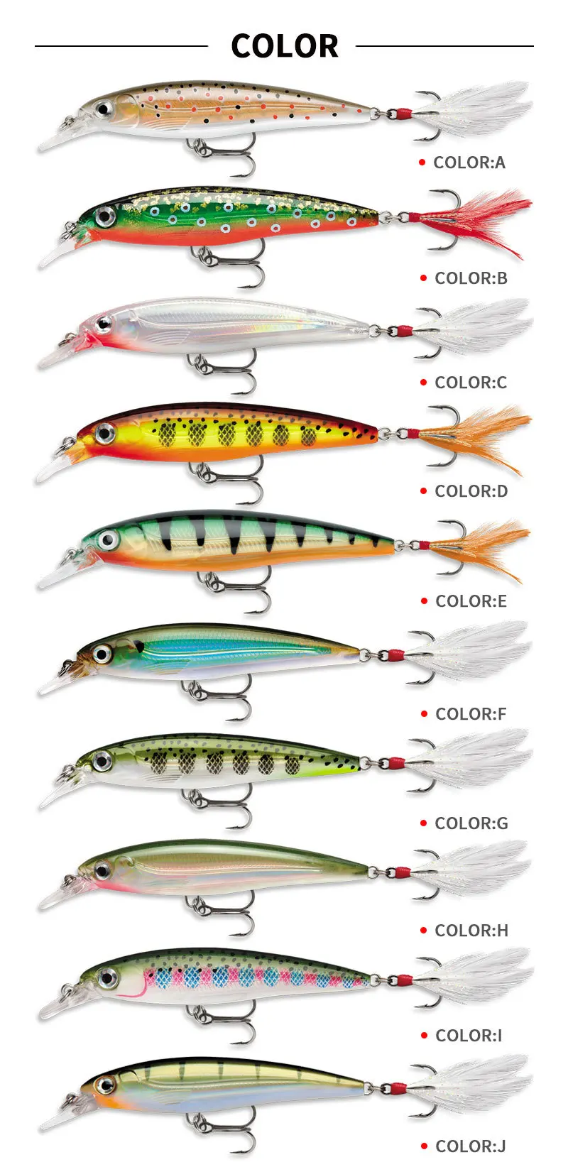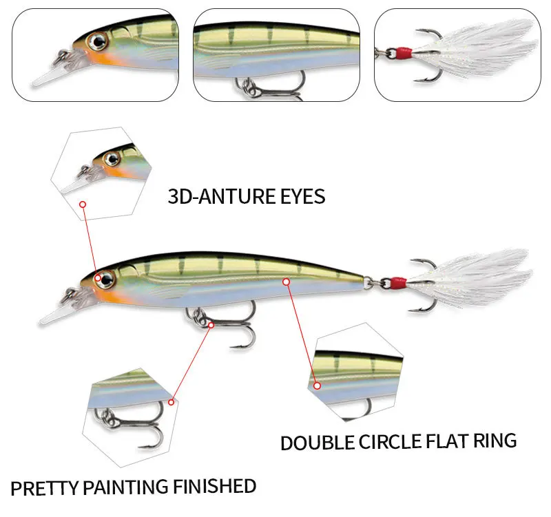 Señuelos de pesca láser Minnow 95mm/13g sub cebo flotante para vías navegables con bola de acero láser vinculante para el cabello cebo de tres anzuelos