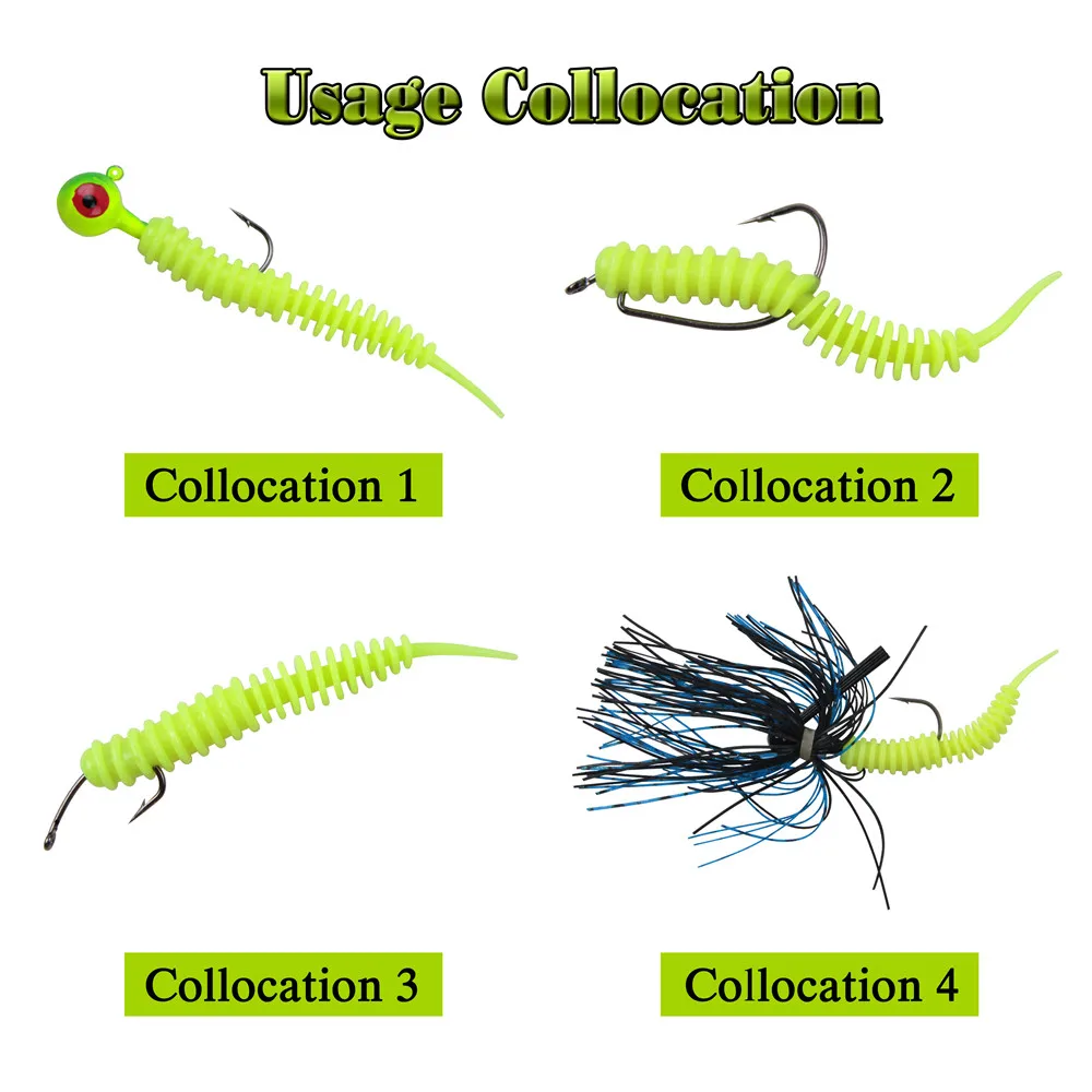 1. Material de goma de alta calidad, duradero y elástico. El gusano de palo de pesca genera una acción de natación exagerada que tiene un gran poder de dibujo.