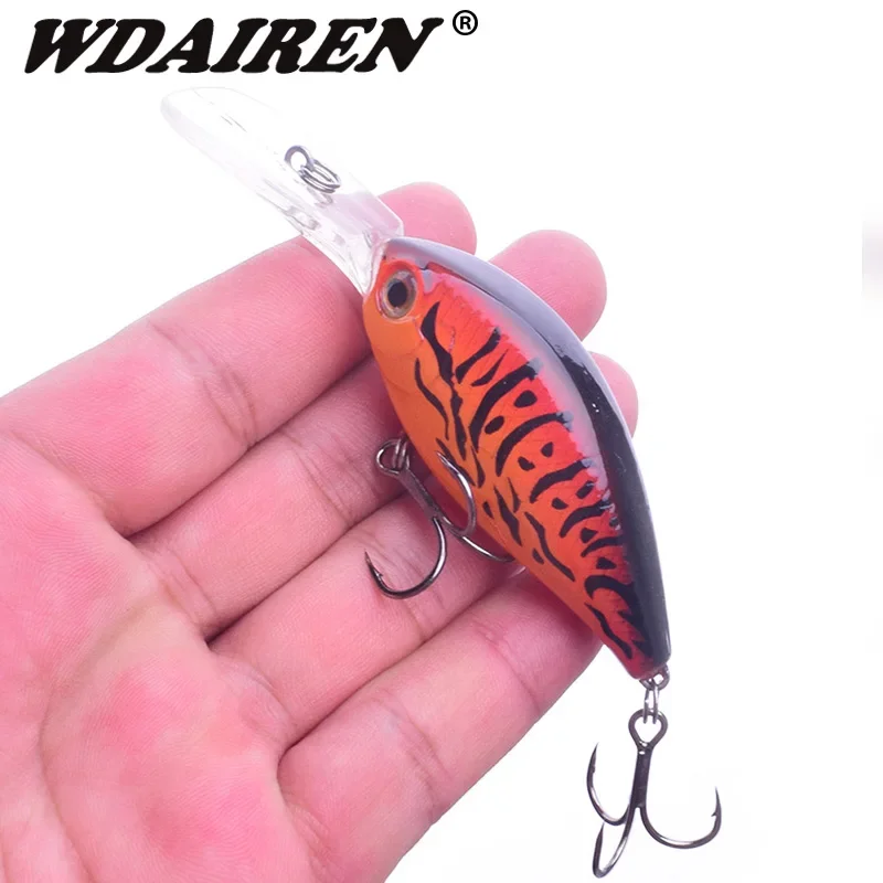 Brand: WDAIRENLength:95mm/3.74inWeigth:15.5g/0.52OZDiving Depth:0.5-1.8mis_customized:yesType :crank fishing lureMaterial:ABS Green plasticQuality hooks:2x Strong BKK HooksRing:Strong Flat RingTarget Fish:Pale chub,bass,Pikes,Yellowcheck carp,Chinese perch,Topmouth culterPackage:Perfect pvc WDAIREN box
