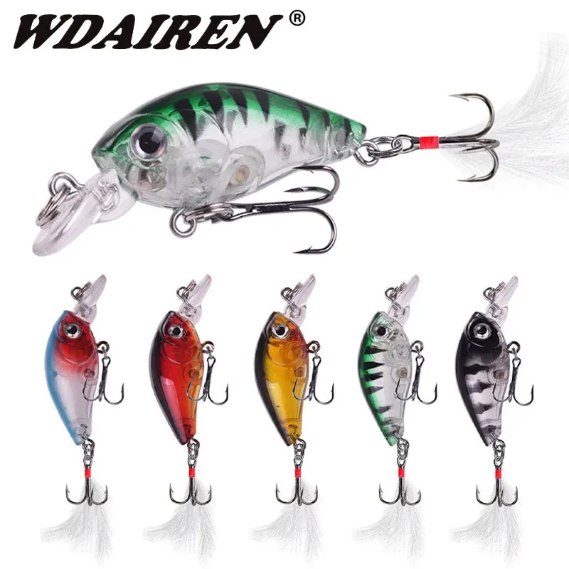 Señuelos de pesca con manivela, cebo flotante de natación de 4,5cm y 3,6g, Wobblers, cebo Artificial duro de plástico con 10 Uds.# Ganchos de plumas Crankbait
