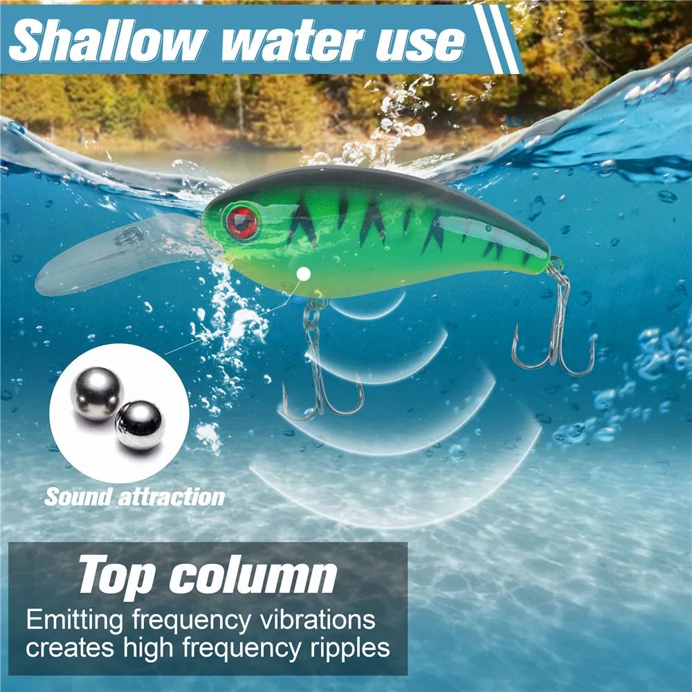 4. Los Crankbaits pueden ser efectivos en casi cualquier lugar donde haya lubinas; bancos y repisas rocosas empinadas, planos amplios y poco profundos, cerca de camas de hierba para lubina trucha Trolling, señuelo de buceo profundo en agua salada/señuelo de pesca de agua dulce.