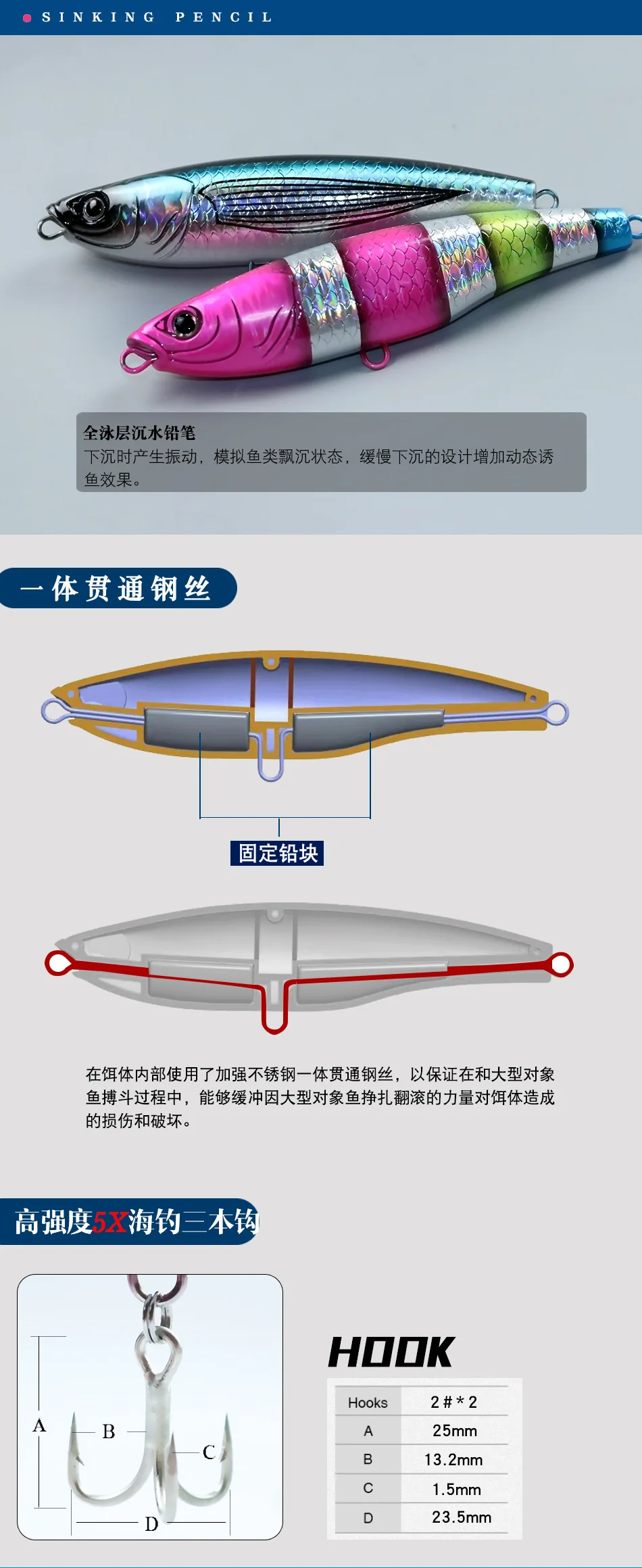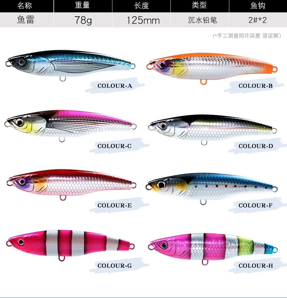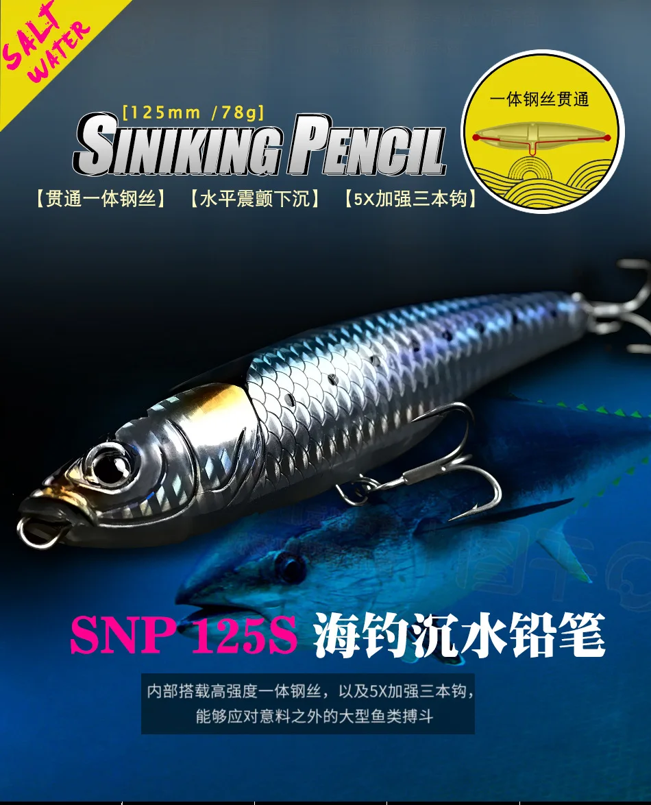 Señuelos de pesca de mar, 1 unidad, 125mm, 78g, hundimiento, barco, curricán, lápiz grande, cebo Artificial para GT, señuelo de pesca de lubina