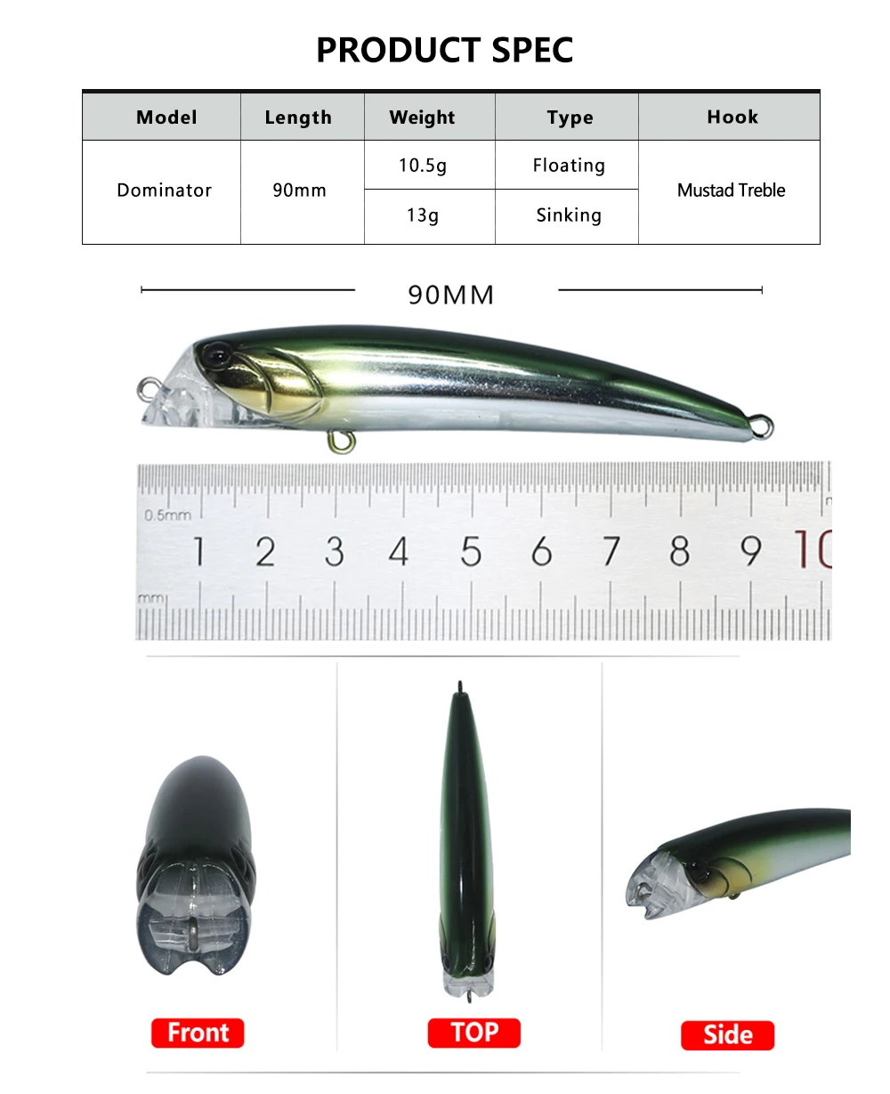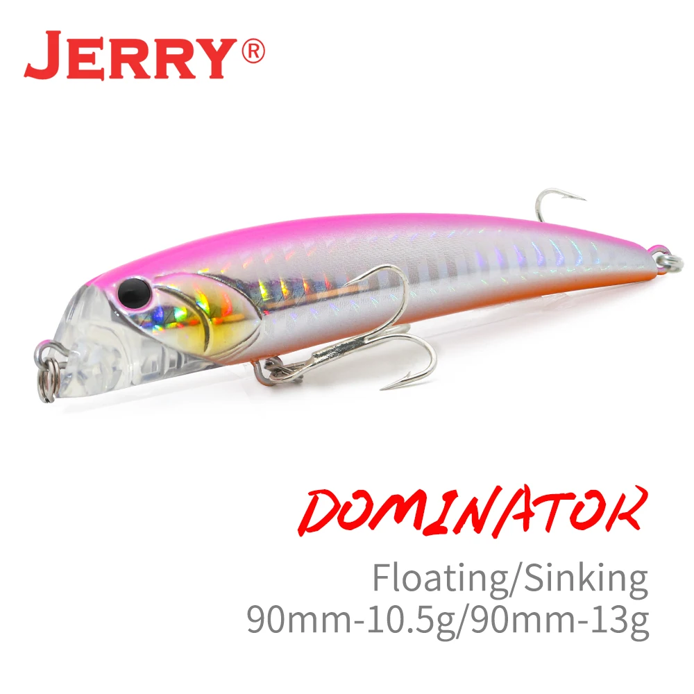 Jerry Dominator 90S 13g Jerk Minnow Señuelos de Pesca de Mar flotante cebos duros de fundición larga aparejos de pesca artificiales de lubina