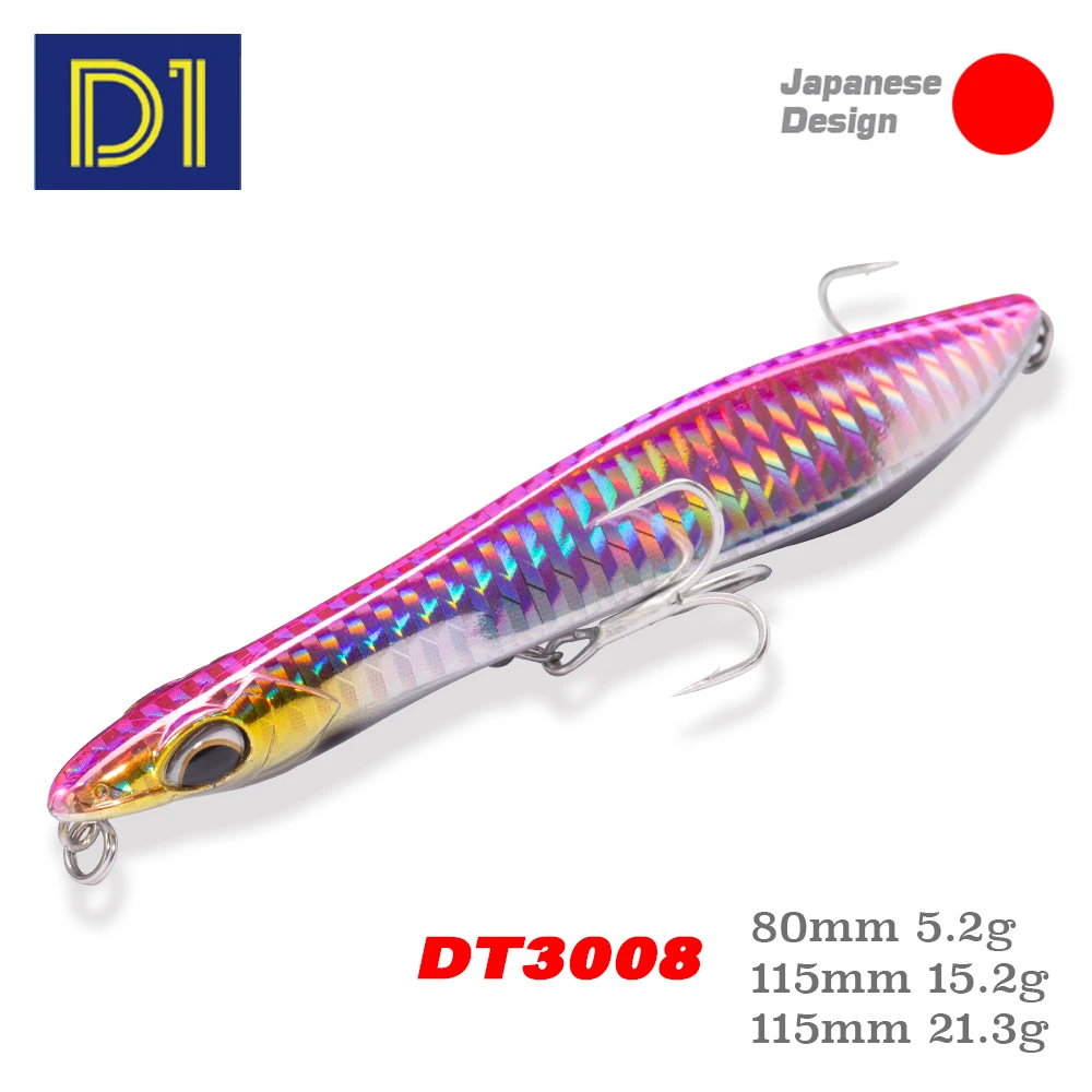 3. DT3008 es un señuelo ideal para la pesca en el mar y más especialmente para la pesca del lubina. Es capaz de adaptarse a todo tipo de condiciones y alcanzar muy buenas distancias de lanzamiento gracias a su forma cónica y su alta densidad.
