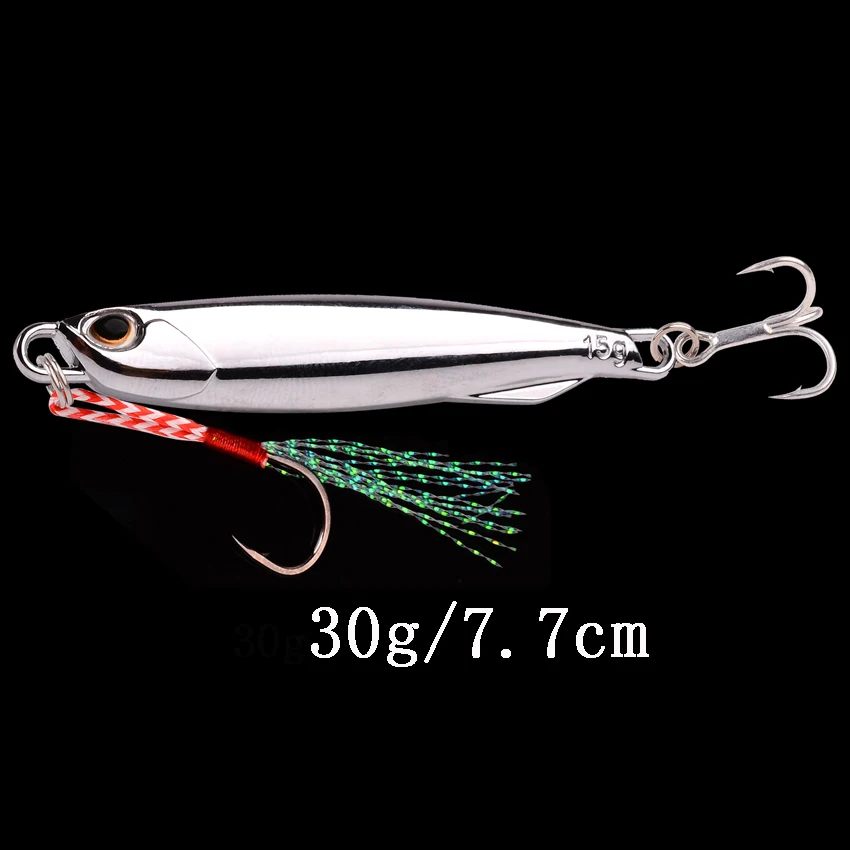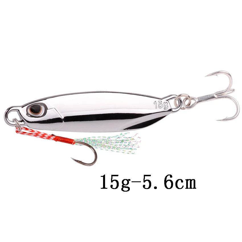 Señuelos de Pesca de Metal con anzuelos, anzuelos de 7g, 10g, 15g, 20g, 30g, 40g, Señuelos de Pesca galvanizados, cebo de lubina de caballa, 1 unidad