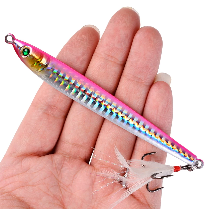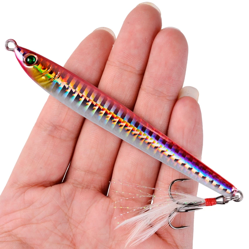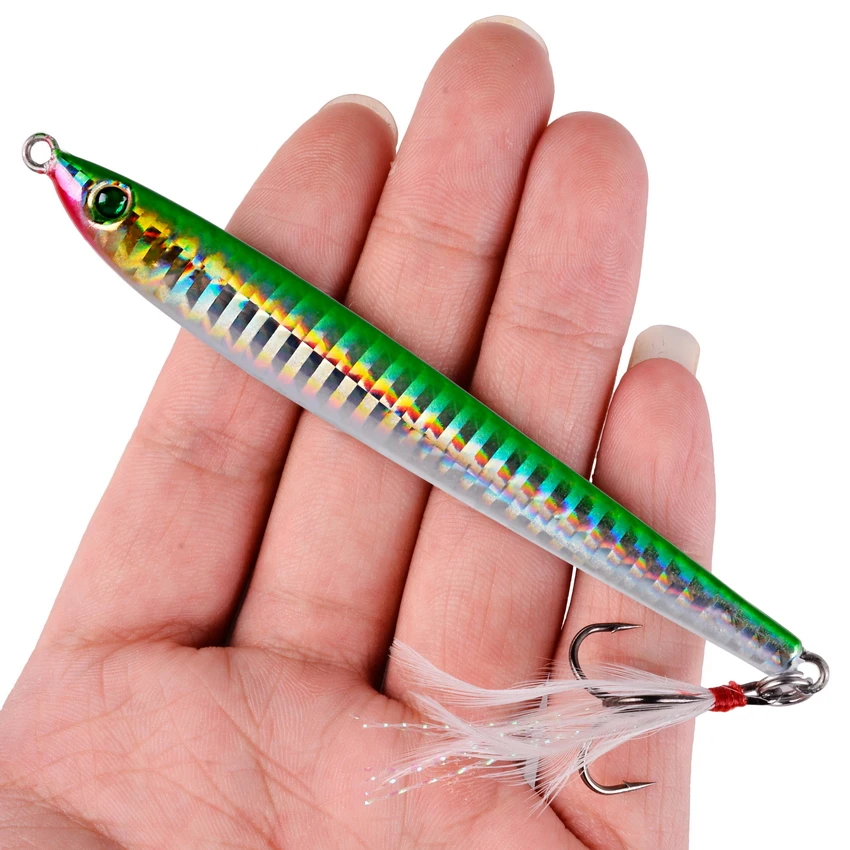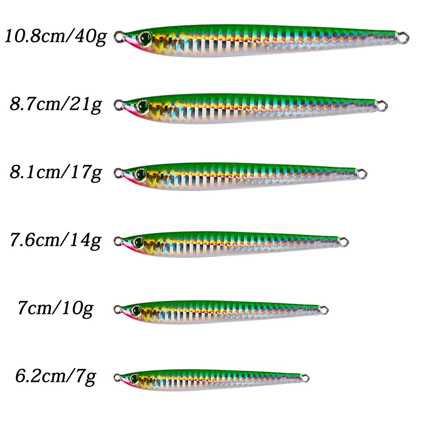 Señuelos de Pesca de Metal, anzuelos de fundición lenta, 7G, 10G, 14G, hundimiento en la orilla, aparejos de pesca de mar, 5 unids/lote