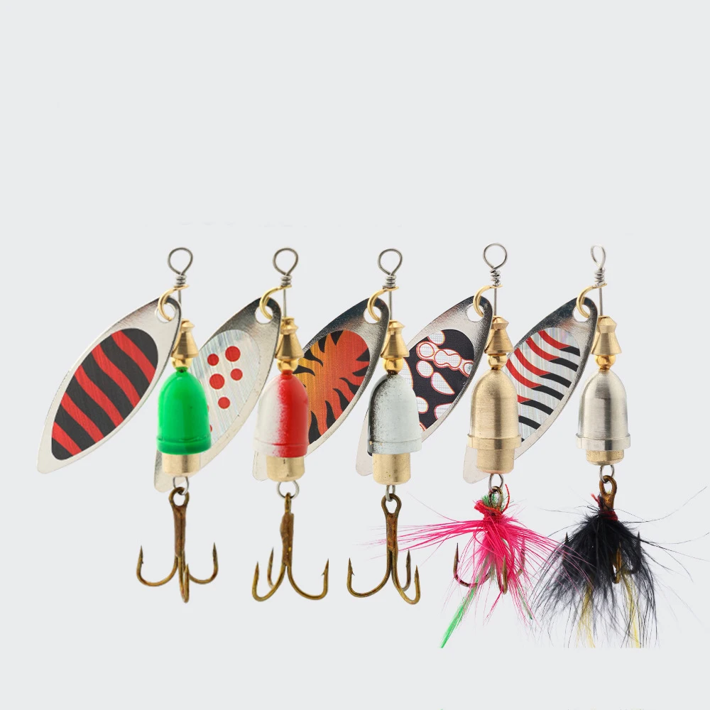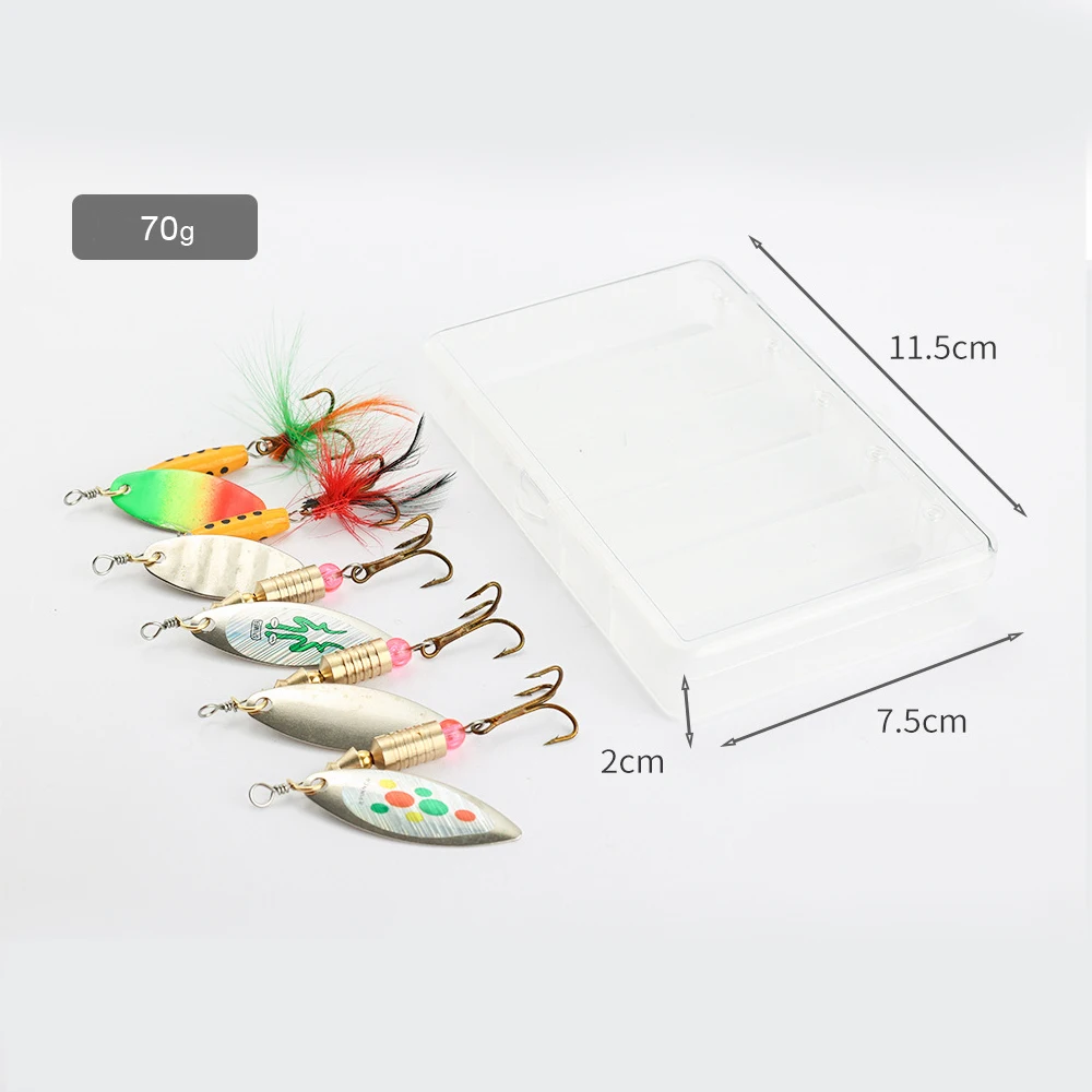 Señuelos de Pesca de Metal, anzuelos giratorios de plantilla lenta de 5 piezas, 33mm, 7g, aparejos de Pesca de lubina, señuelos de carpa