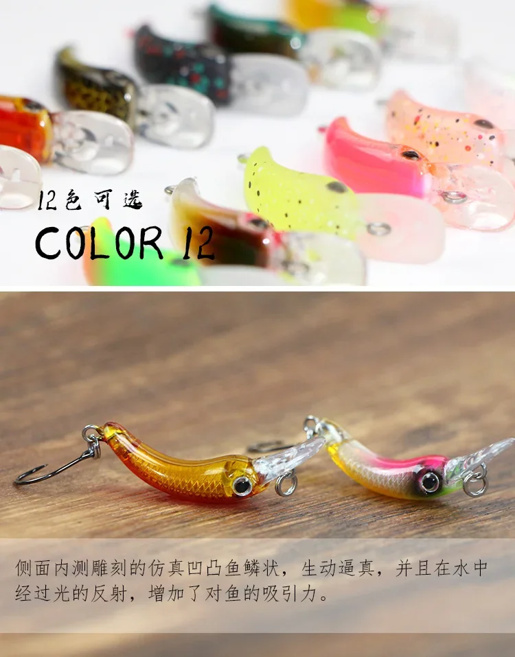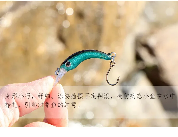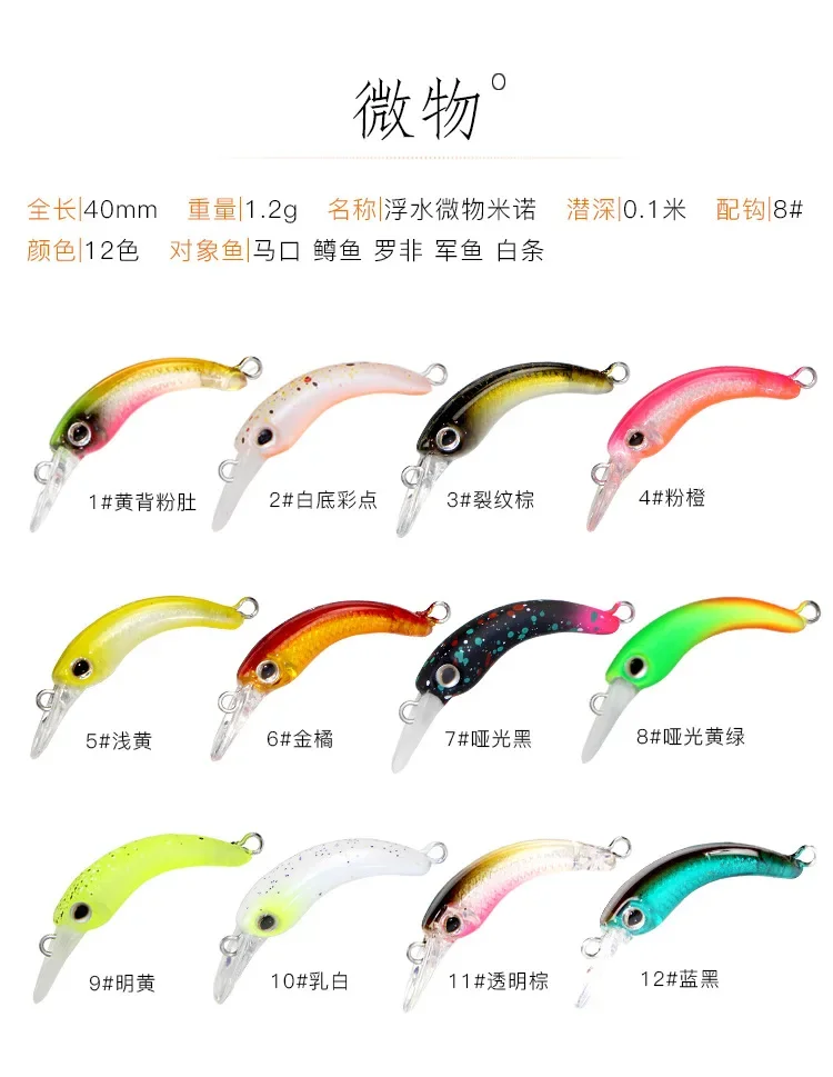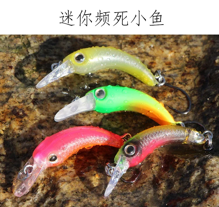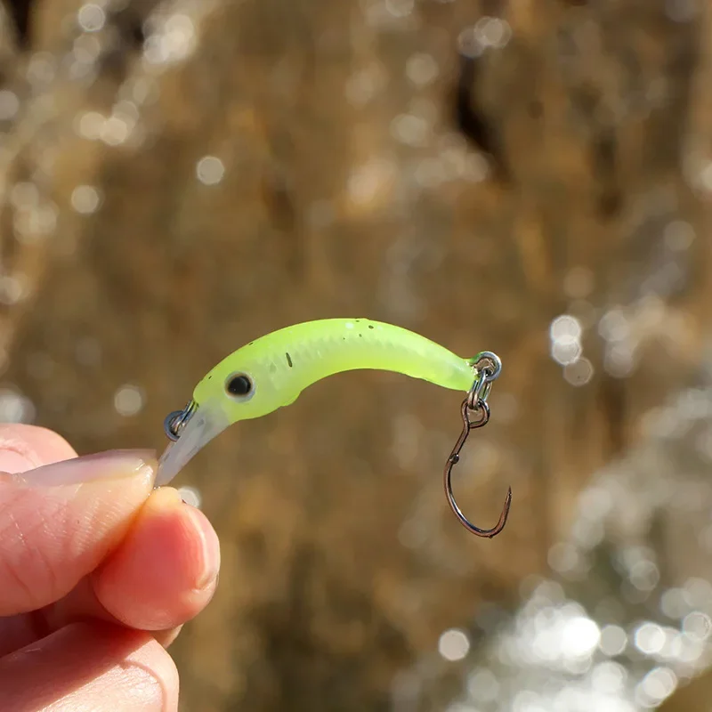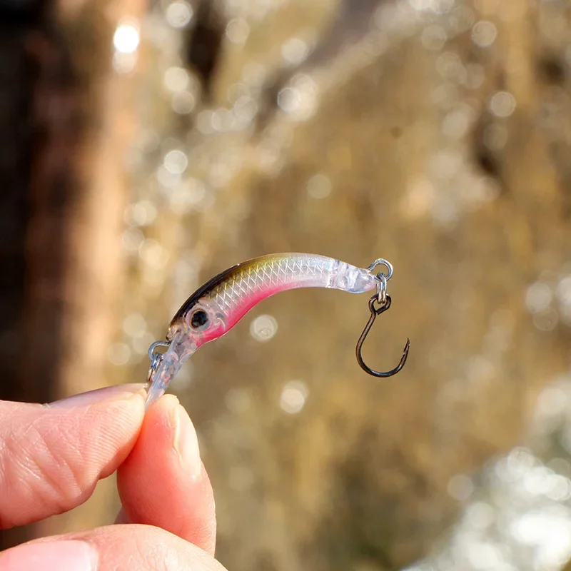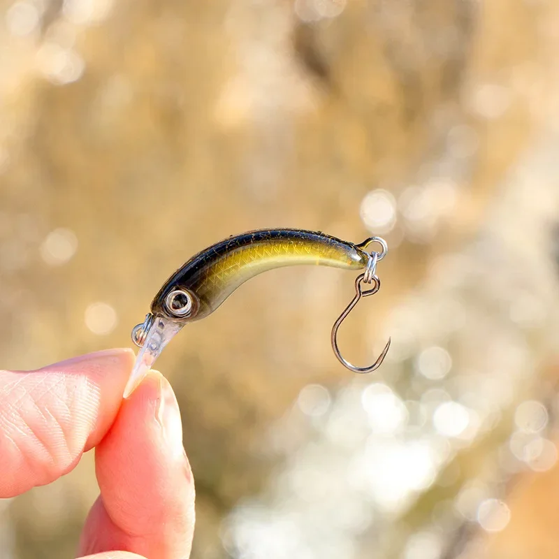 Señuelos de pesca Mini Minnow, 40mm/1,2g, pequeño pez curvo, caña de un solo anzuelo, cebo de trucha de StripeTilapia, 1 Uds.