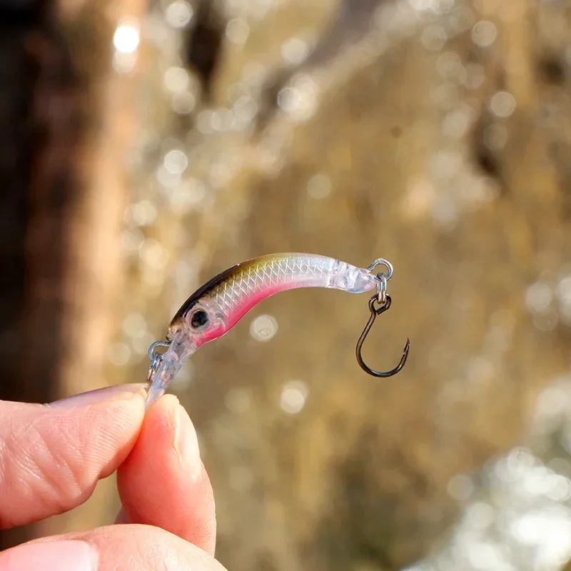 Señuelos de pesca Mini Minnow, 40mm/1,2g, pequeño pez curvo, caña de un solo anzuelo, cebo para trucha deilápia a rayas blancas, 1 Uds.