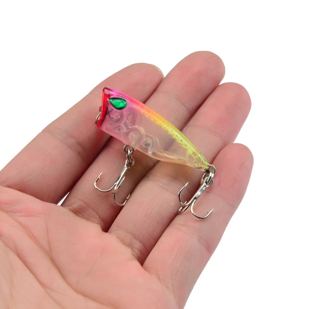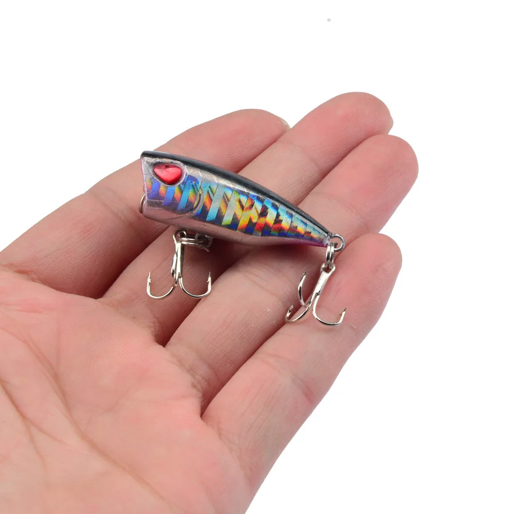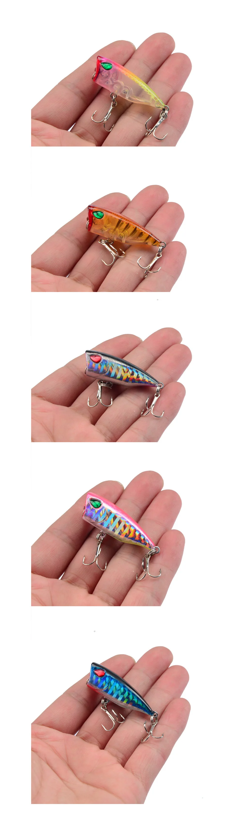1pcs mini popper fioating Lures 4cm / 3g Topwater Popper 3D eyes Wobblers Hard Plastic Bait With 6 # Hooks Fishing Tackle