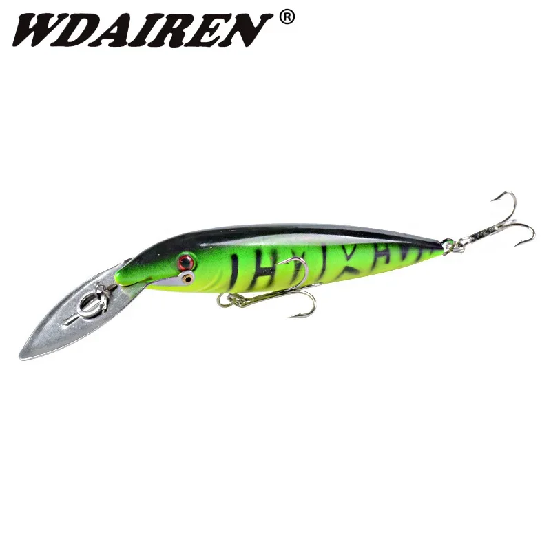 Señuelos de pesca Minnow, 14cm, 16.2g, Wobblers de buceo profundo, cebo duro Artificial, barco de curricán, mar para lubina, Lucio, aparejos de pesca, 1 Uds.