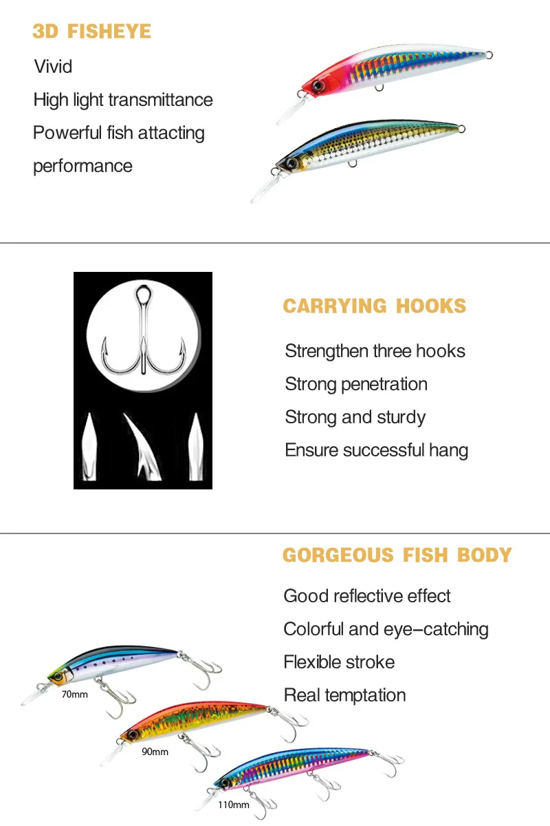 Señuelos de Pesca Minnow, 70mm, 16g, ojos 3D, Wobblers, Crankbaits, cebos duros artificiales, accesorios de pesca de carpa