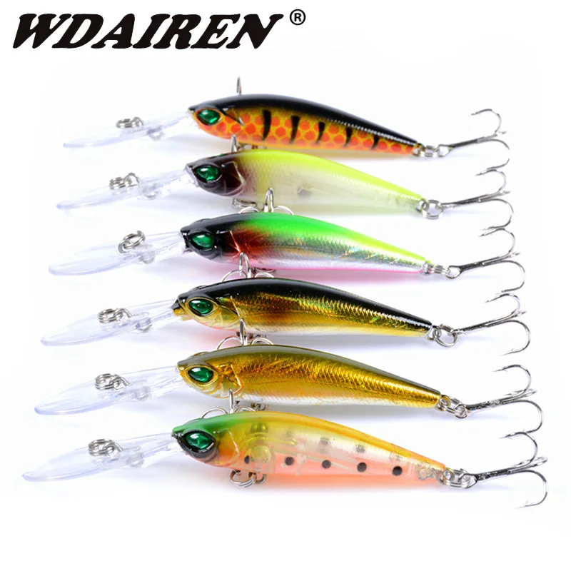 Señuelos de Pesca Minnow Crankbait, juego de señuelos de trucha Wobblers, cebo duro flotante, aparejos de pesca, Señuelos de Lucio, 6 uds.