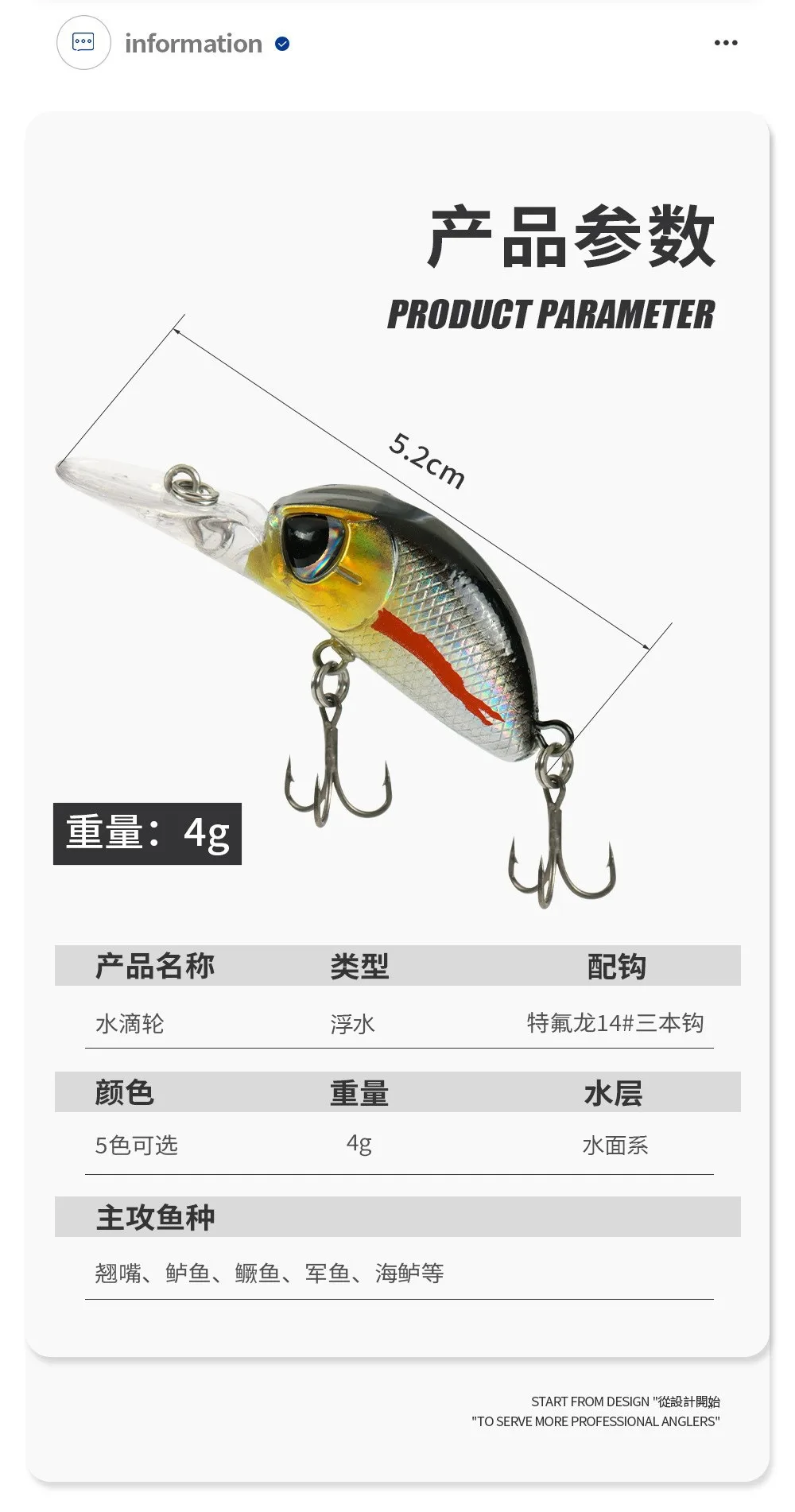 Señuelos de Pesca Minnow flotantes, 5,2 cm, 4g, lengua larga, Jerkbait, Lucio, Carkbait, Wobblers, cebo duro profesional, nuevo