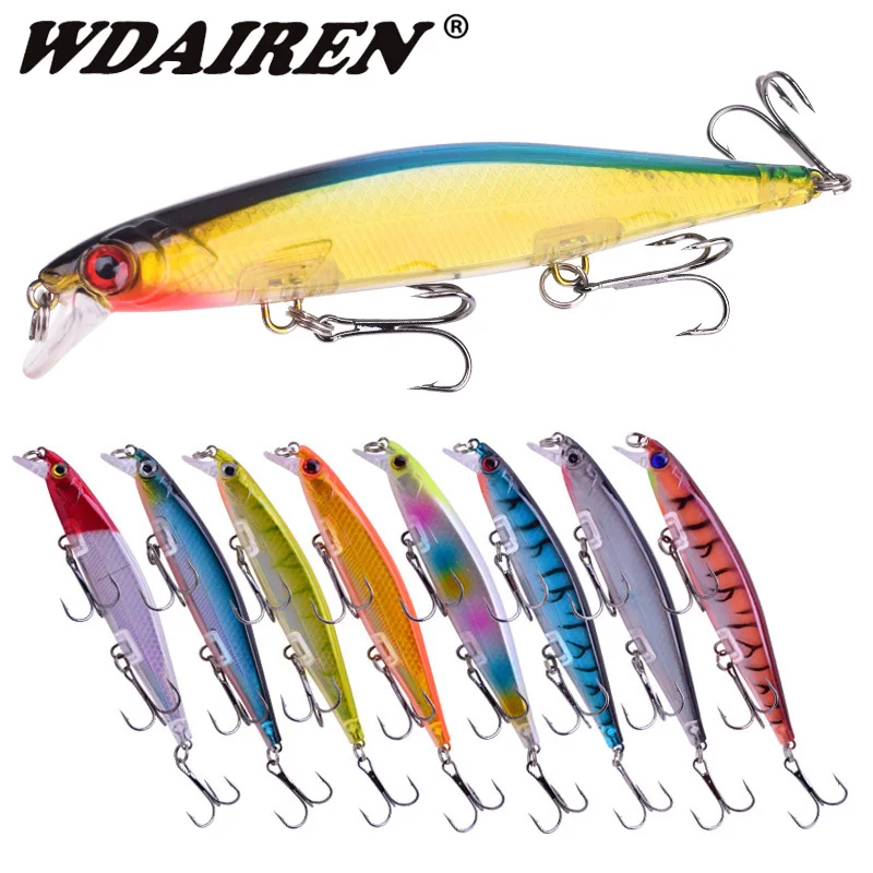 1 ud. Señuelos de Pesca láser Minnow fregadero poco a poco Wobblers Swimbait 11cm 13,5g cebo duro Artificial Crankbait Lucio carpa Pesca