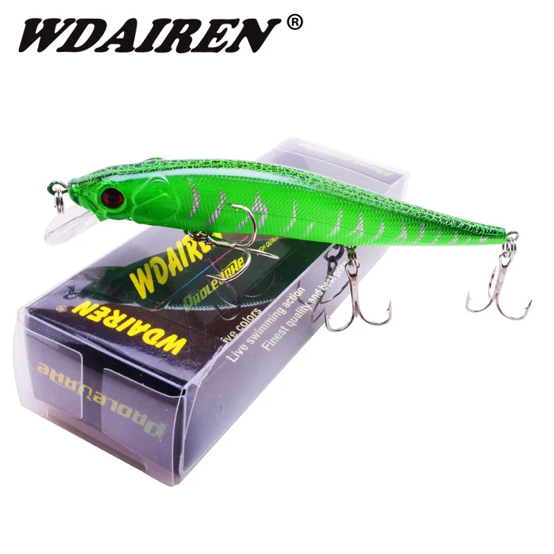 1 Señuelos de Pesca de pececillos 11,5 cm 13,5g cebos flotantes aparejos ojos 3D Isca Bass cebo duro Artificial buceo 1,5 M