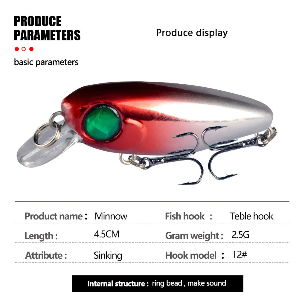 Señuelos de pesca modelo caliente, 1 Uds., 4,5 cm, 2,5g, cebo duro, 5 colores para elegir, calidad profesional, profundidad de pececillo