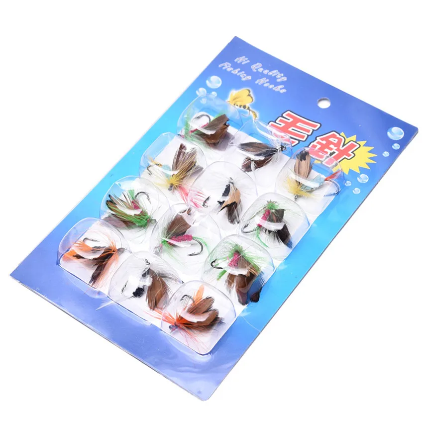 Señuelos de pesca con mosca para insectos, anzuelo de acero con alto contenido de carbono, aparejos de pesca con manivela superafilada, 12 unidades por juego