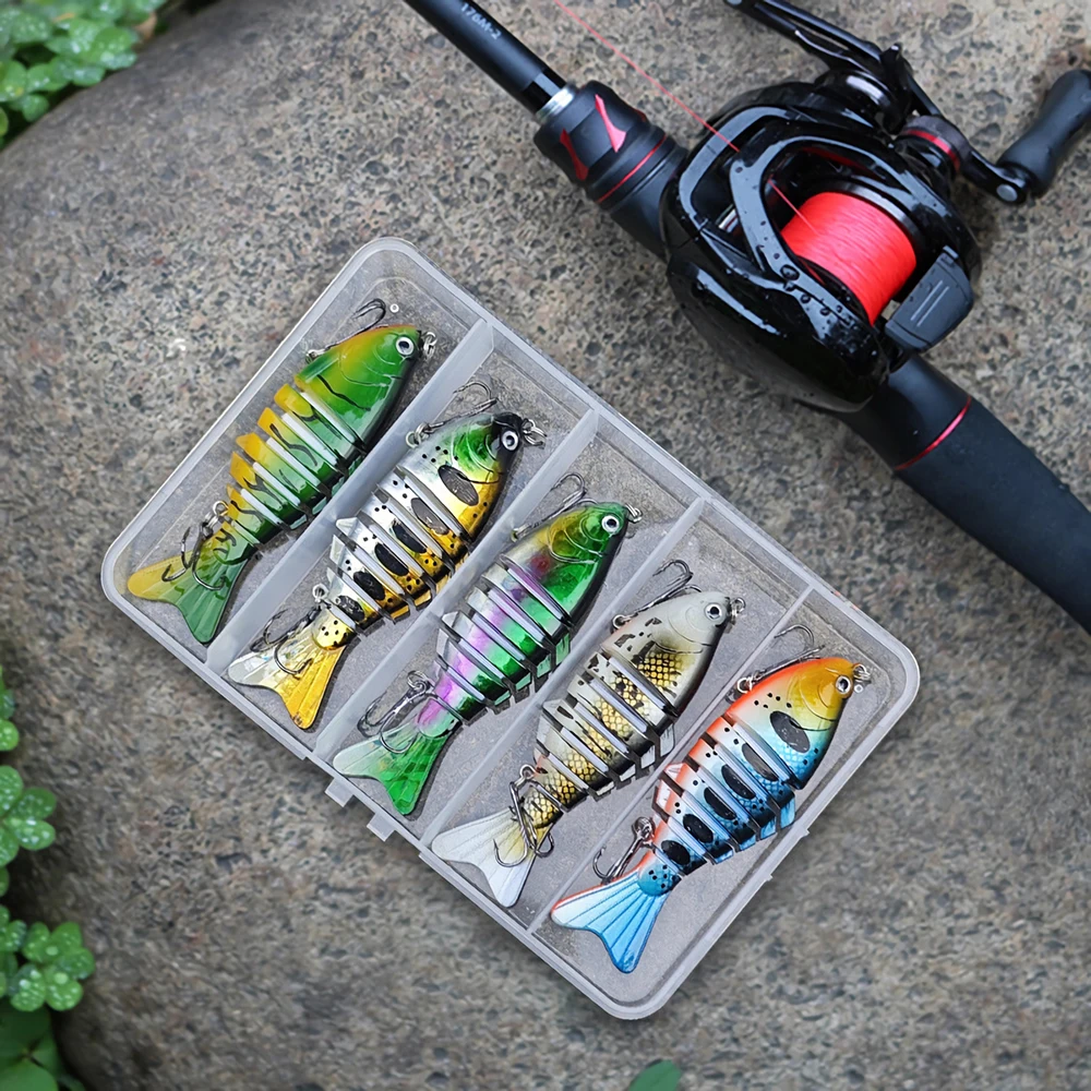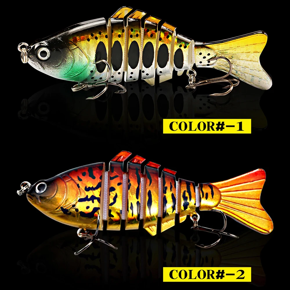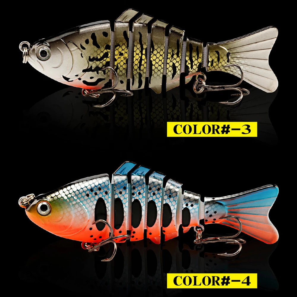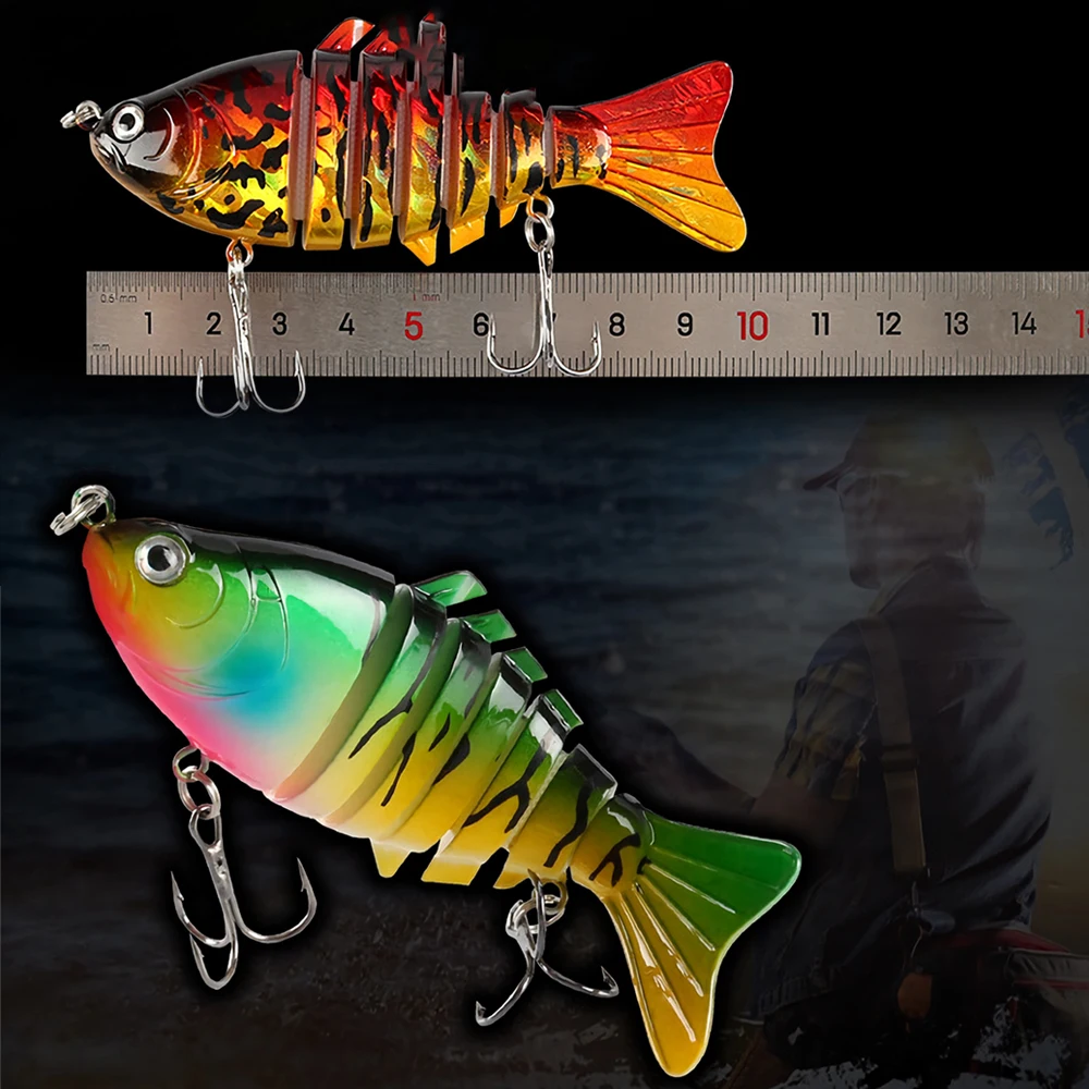 El cuerpo del señuelo de pesca se divide en siete segmentos. El cuerpo de material ABS de alta calidad bien diseñado se hundirá lentamente y puede balancearse y nadar como un pez real. El cebo fresco realista siempre puede atraer a presas más grandes para morder.