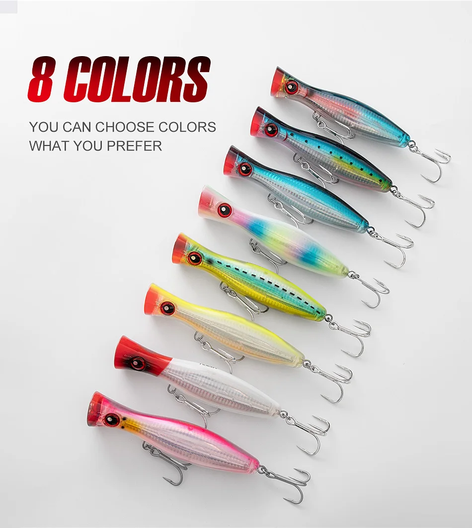Noeby Señuelos de pesca Popper de gran juego 12cm43g 16cm78g 20cm154g Topwater Wobbler cebo duro artificial para señuelo de pesca de agua salada GT