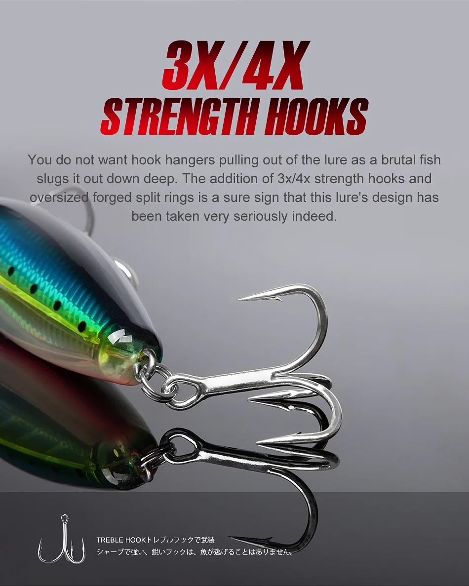 4.Equipado con anzuelos triples NOEBY reforzados, afilados y fuertes.