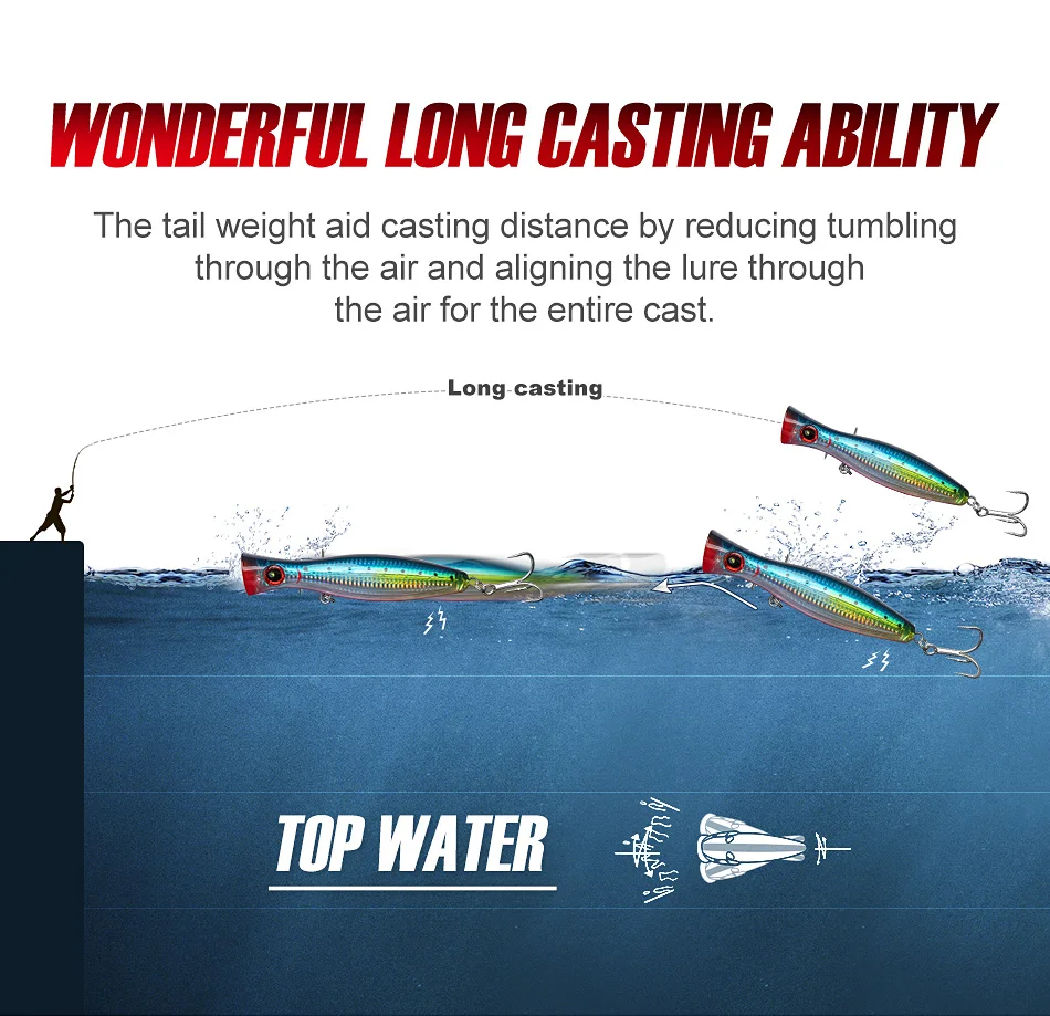 Noeby Señuelos de pesca Popper Topwater flotante Wobbler 12cm43g 16cm78g 20cm150g cebo duro Artificial de agua salada para señuelo de pesca GT