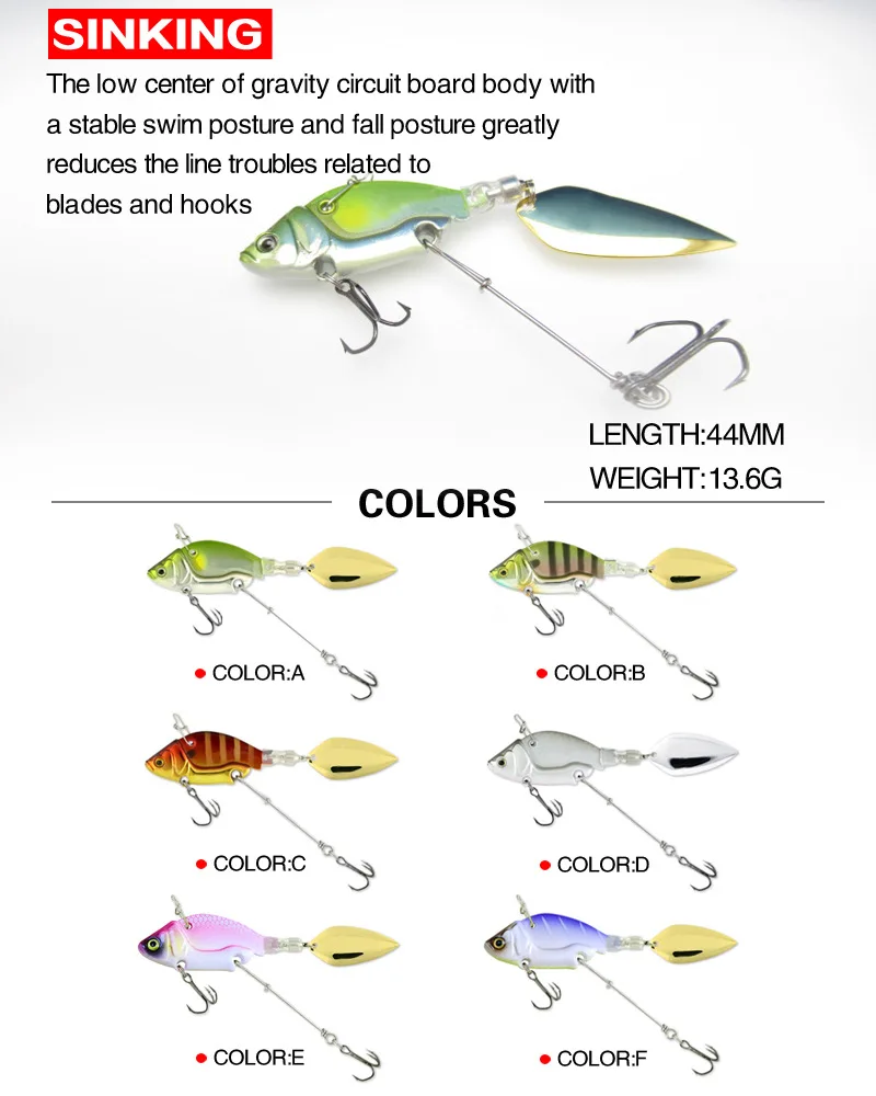 Señuelos de Pesca oscilantes giratorios de Metal Vib cebo vibratorio Pesca de invierno 13,6g 44mm cebos duros artificiales Spinner cuchara señuelo Pesca