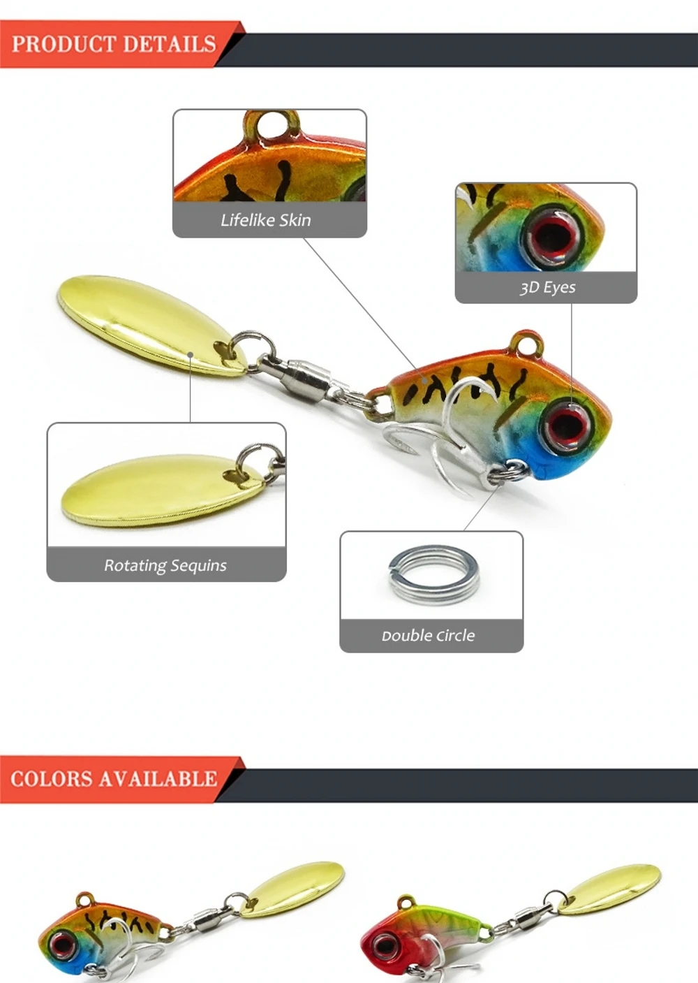 Descripción: 5g/10g/15g/18g Metal VIB Señuelo de pesca Spinner hundido cuchara giratoria Pin Crankbait lentejuelas cebos aparejos de pesca