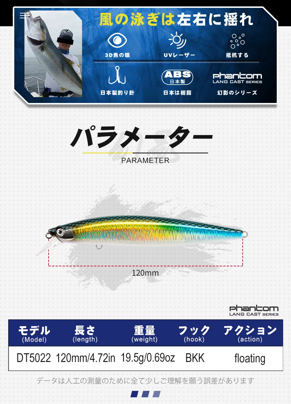 Señuelos de Pesca de pececillo flotante D1 120mm/19,5g Wobblers artificiales de fundición larga cebos duros de agua salada para aparejos de Pesca de trucha lubina