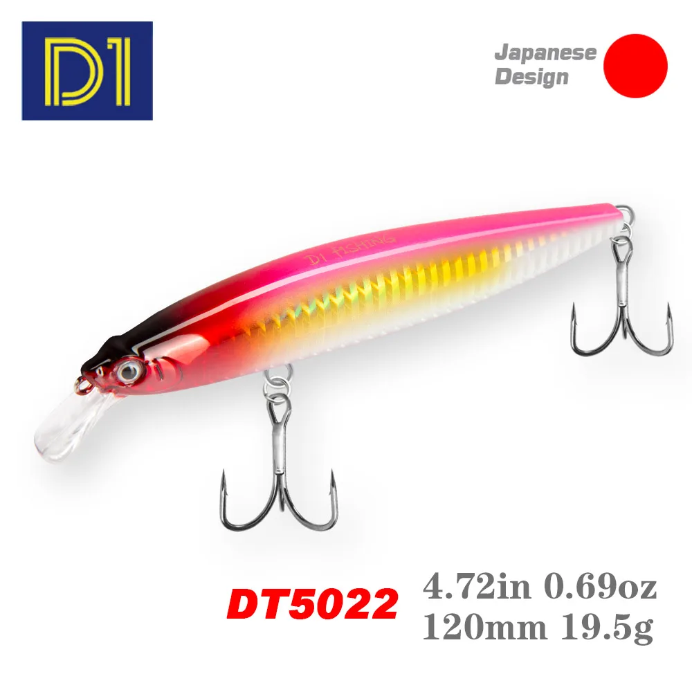 Señuelos de Pesca de pececillo flotante D1 120mm/19,5g Wobblers artificiales de fundición larga cebos duros de agua salada para aparejos de Pesca de trucha lubina