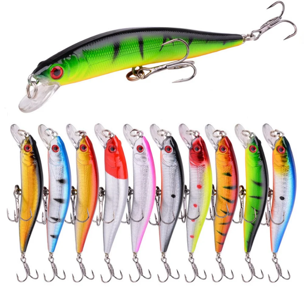 Señuelos de Pesca de pececillo flotante, de ojos 3D Crankbaits, cebo duro Artificial Isca de 10cm/8,4g, carpa Wobblers, aparejo de pesca de Lucio, 1 Uds.