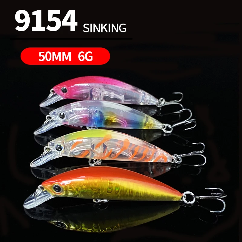 Señuelo de Pececillo de Fundición Larga, Señuelo de Plástico Duro, Wobbler, Pesca de Trucha, Accesorios para Aparejos de Pesca, 1mm, 50mm, 6g, 9154