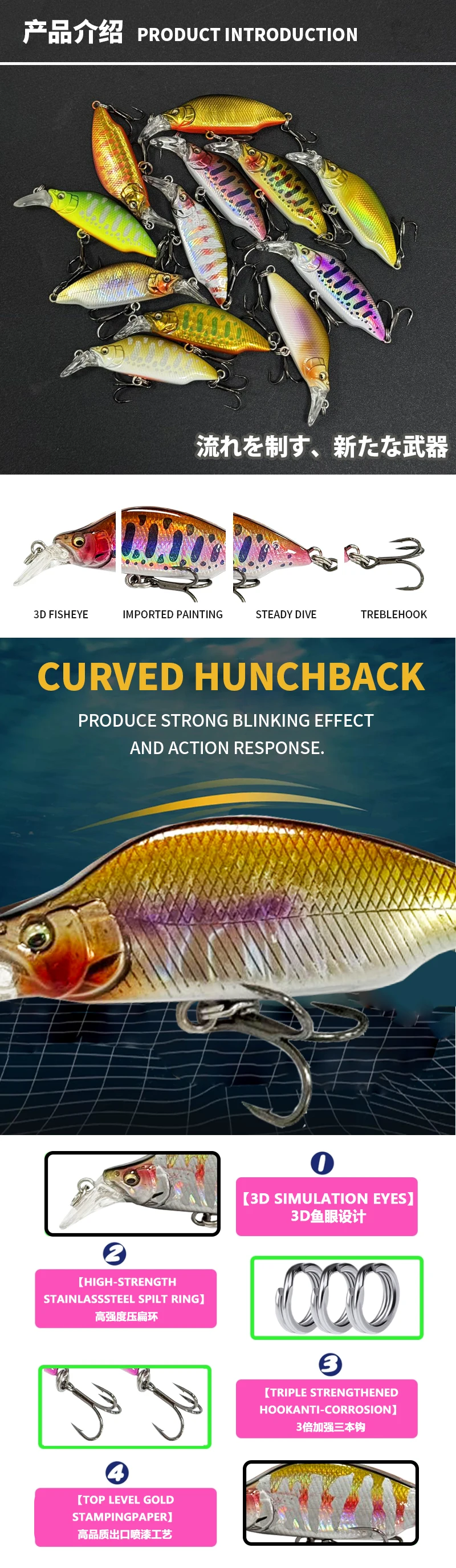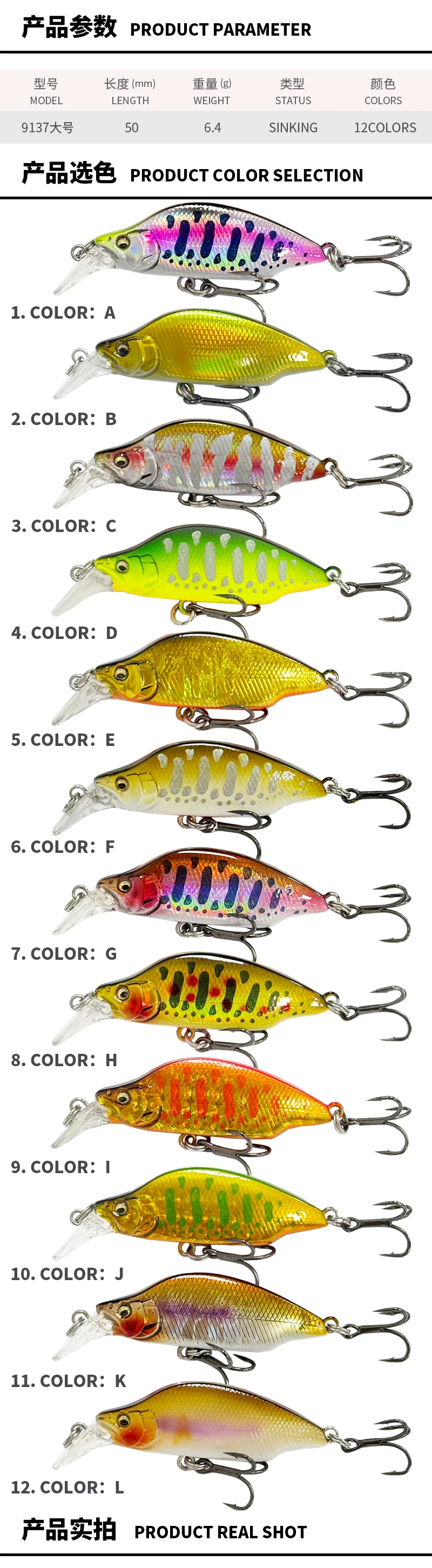 Señuelos de pesca de pececillo que se hunden, 6,4g, 50mm, diseño japonés, cebo Artificial para perca, lubina, Jerkbait, Swimbait, equipo Wobbler