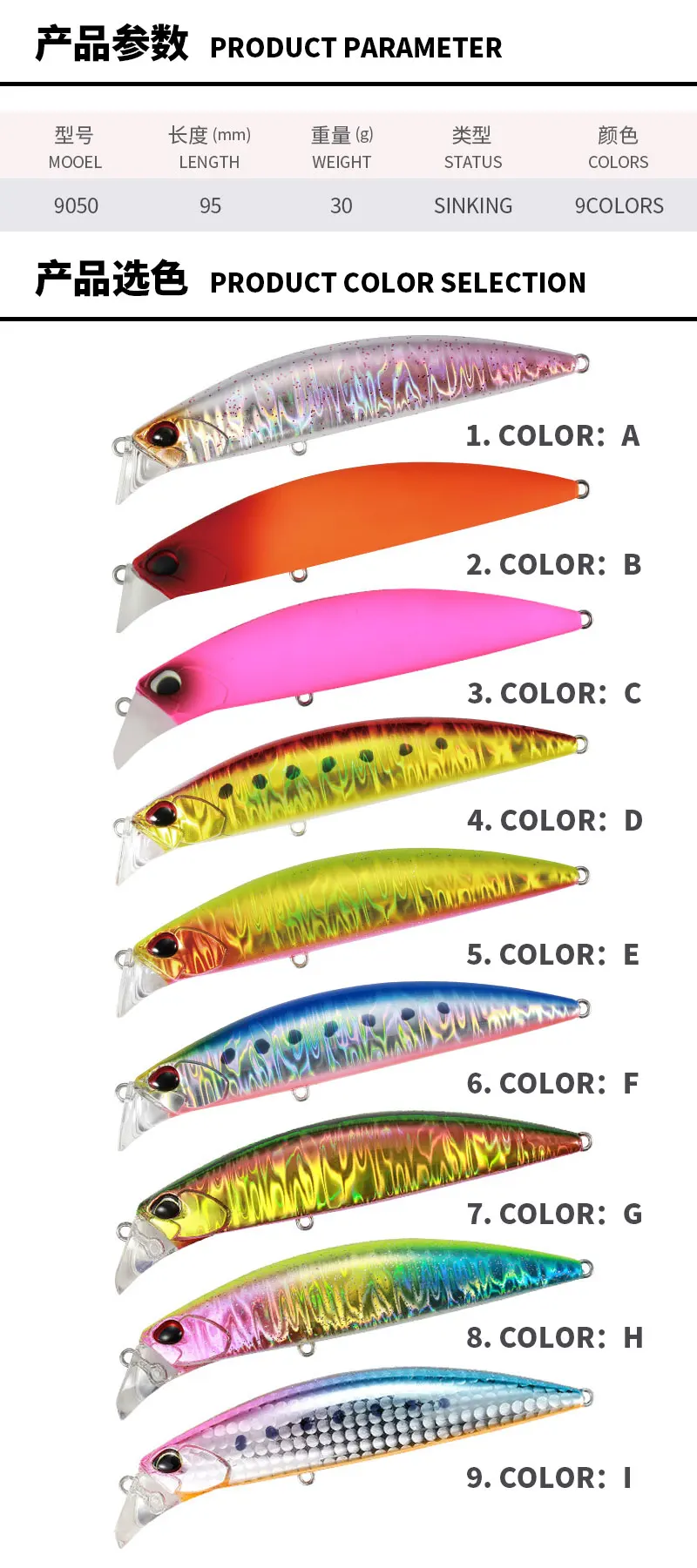 Señuelo de Pececillo Artificial, Señuelo de Pececillo, Pesado, Hundimiento, Pesca, Lubina, Trucha, Pesado, Aparejo de Pesca, 1, 95mm, 30g, 9030