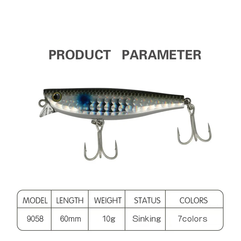 Señuelos de Pesca de Pececillo, Cebo Duro Artificial de Plástico Duro, Wobbler Isca, 1, 60mm, 10g, 60mm, 9058