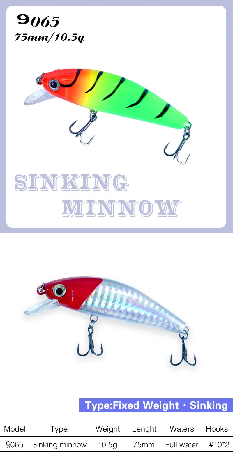 1 señuelo de pececillo de 75mm y 11g, cebo Artificial hundido, 8 colores, plástico duro, Wobbler, pesca, trucha, señuelo, aparejos de Pesca 9065
