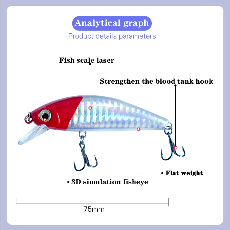 Señuelos de Pesca de pececillo de hundimiento lento, cebo Artificial Wobbler para trucha de agua dulce, equipo de Pesca Swimbait, 11g, 75mm