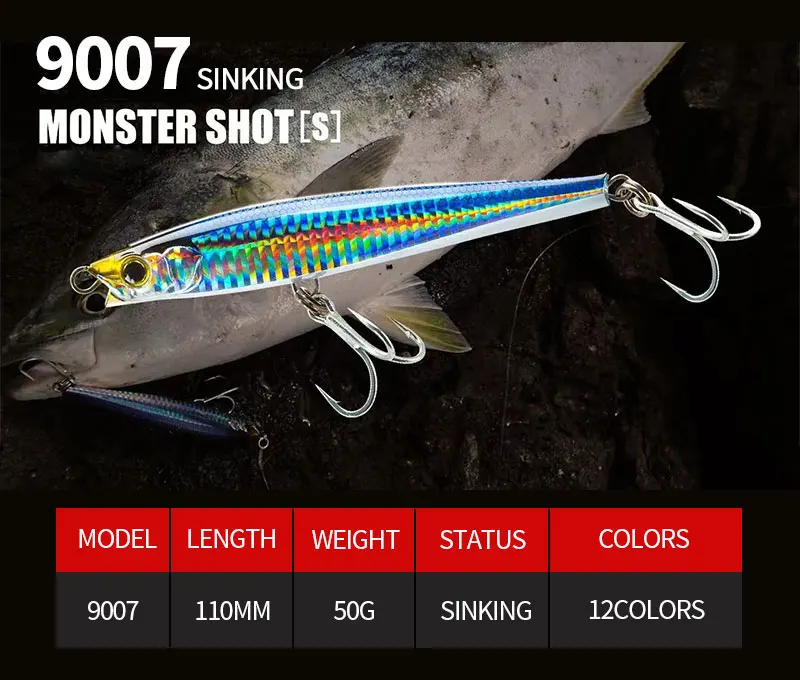 1 Uds. Cebo de pesca hundido señuelo de agua salada 110mm 48g Minnow Señuelos de pesca Minnow hundido pesado Pesca Artificial cebo duro 9007