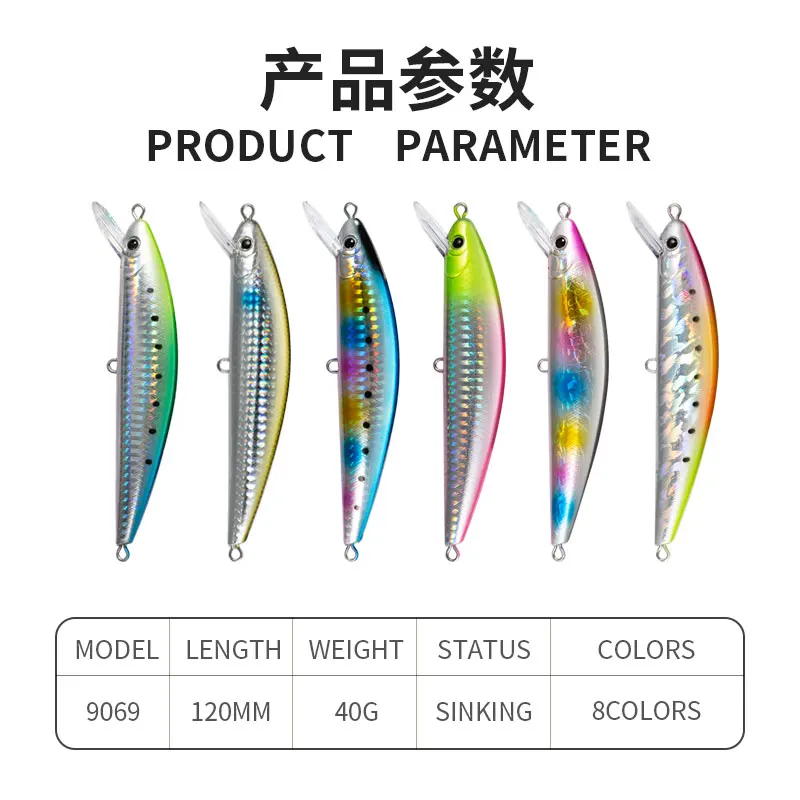 1 Uds 120mm 40g Minnow de hundimiento pesado gusano señuelo de trucha lanzamiento largo hundimiento Señuelos de pesca Wobbler pesca cebo duro Pesca 9069