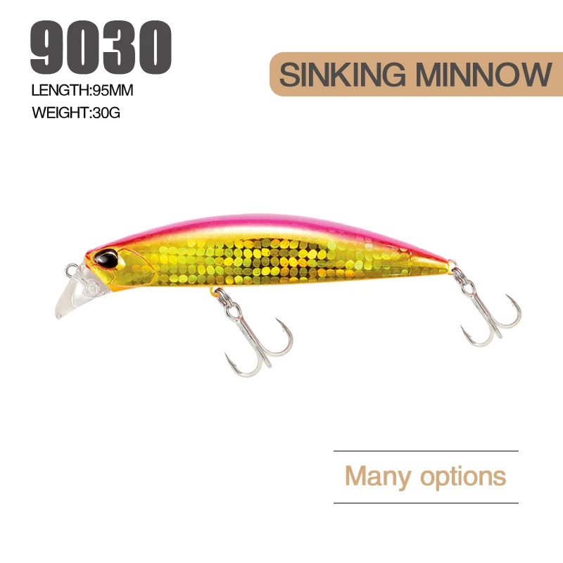 1 Uds. Señuelo de Minnow de 95mm y 30g, cebo Artificial, Pesca de hundimiento pesado, señuelo de trucha, señuelo de Minnow pesado, aparejos de pesca 9030