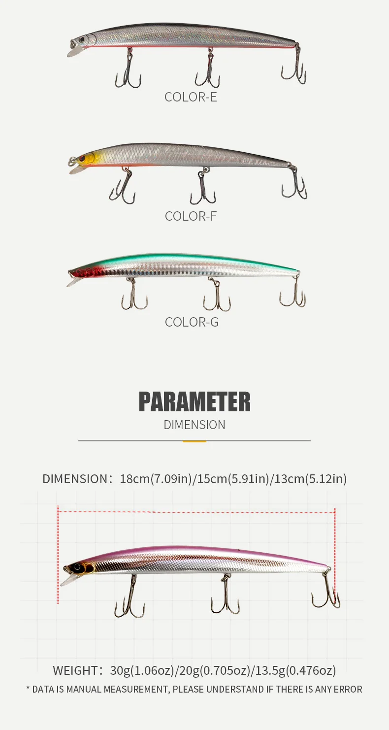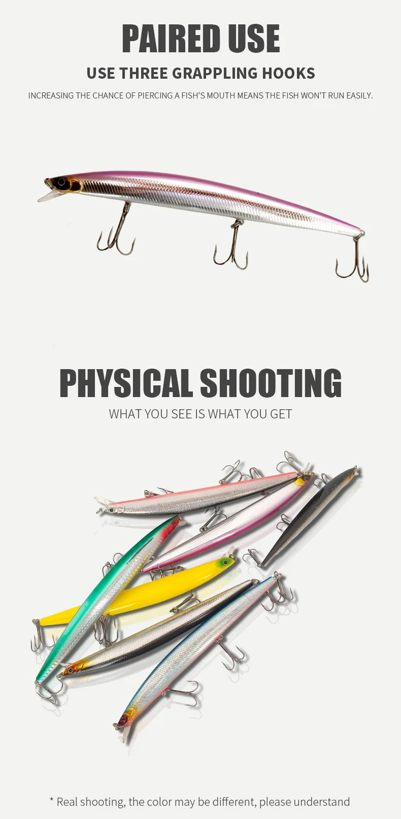 Señuelos de pesca de pececillo largo, 5 uds., 18cm, 15cm, 13cm, Crankbait láser, cebos artificiales duros, señuelos de plástico grandes y falsos, aparejos de pesca de mar