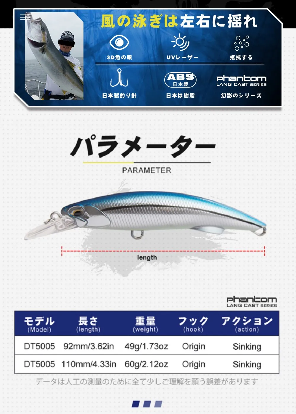 Súper señuelo que lanza muy lejos. ideal para pescar en Reunión de sables y snappers