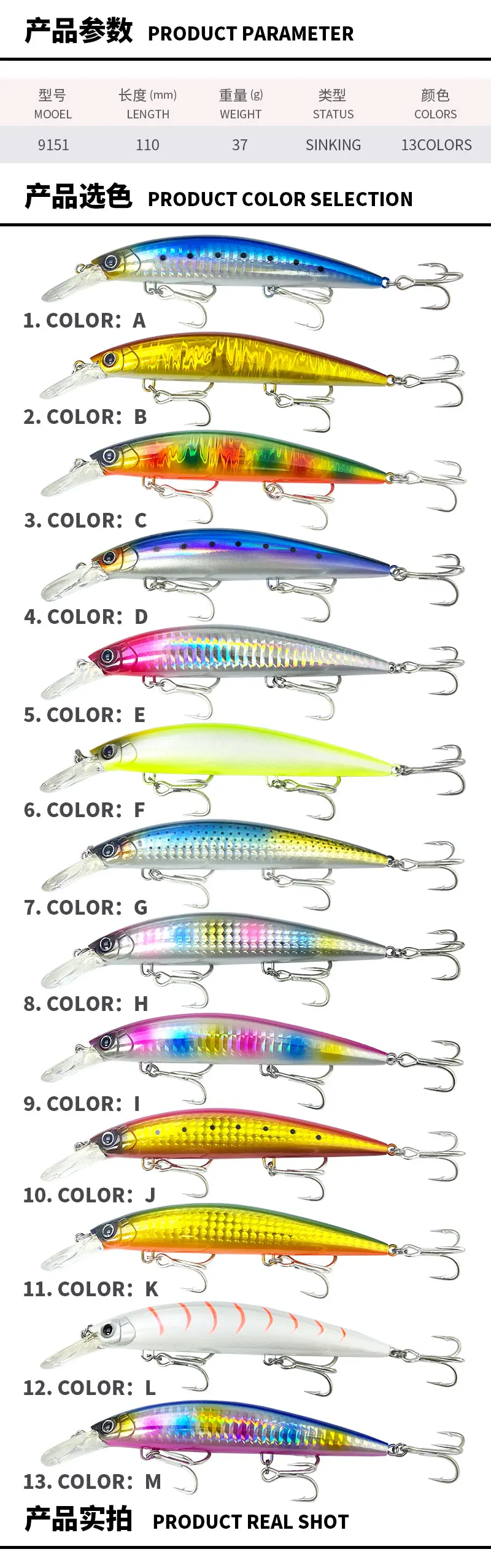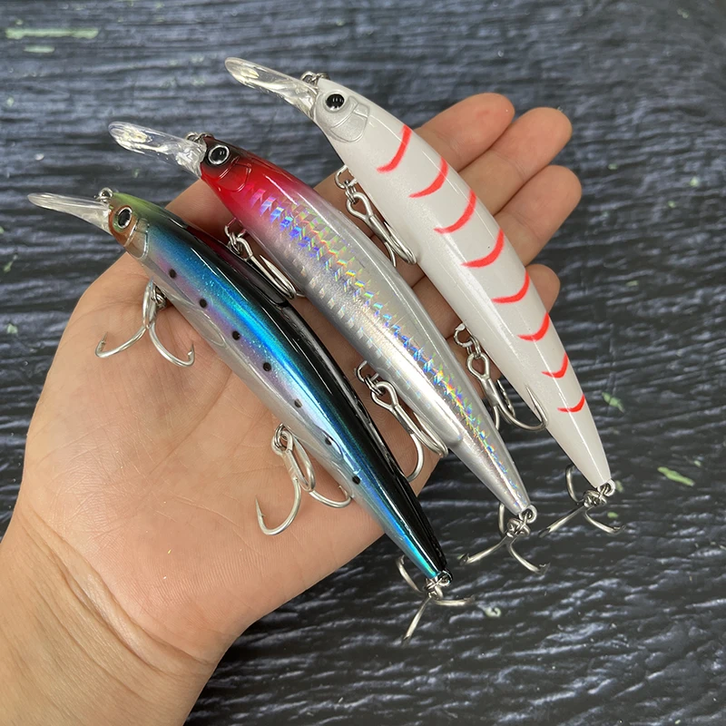 1 señuelo de pesca de pececillo que se hunde, 11cm, 37g, cebo duro Artificial grande de fundición larga, Wobblers para Pike 3D Swimbait Jerkbait Tackle