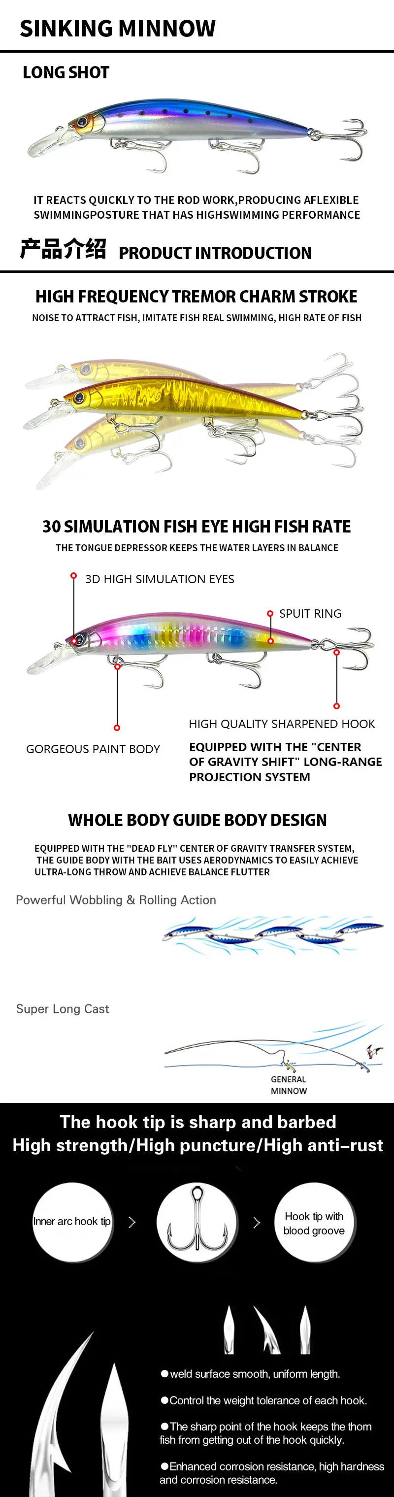 5. Está ABS hecho de material plástico, resistente y resistente, resistente a caídas y percusión. Las bolas de acero utilizadas en el interior han sido probadas con instrumentos de precisión para garantizar el estilo de natación de cada cebo.